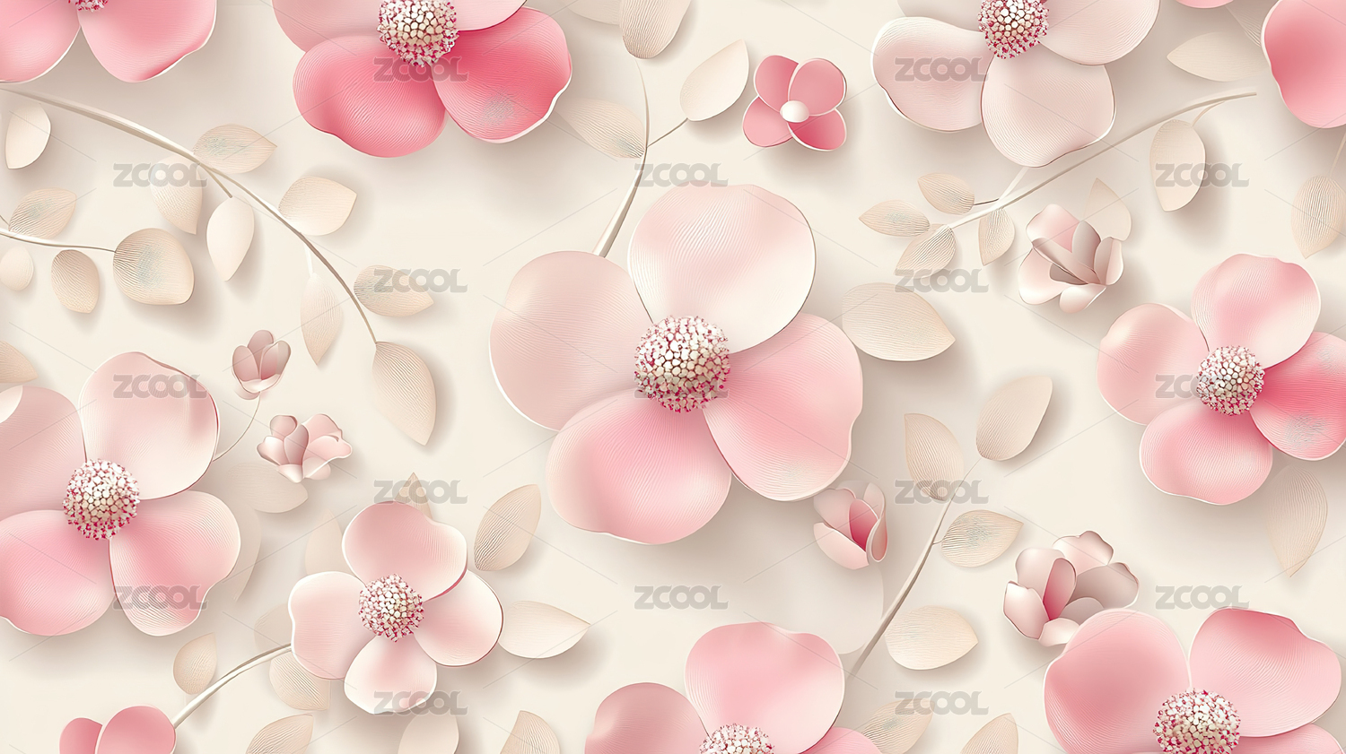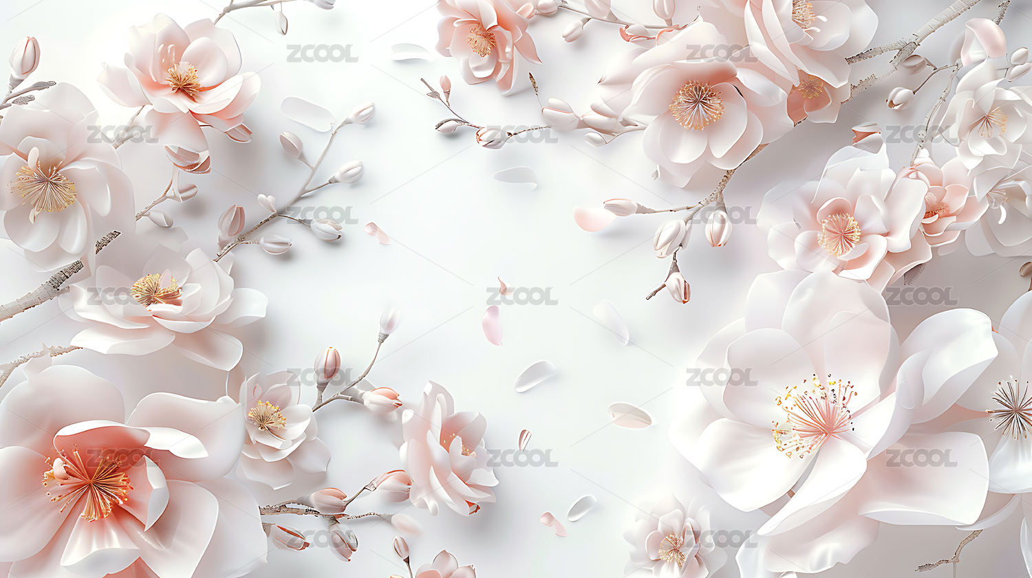 淡雅纸雕立体樱花鲜花背景
