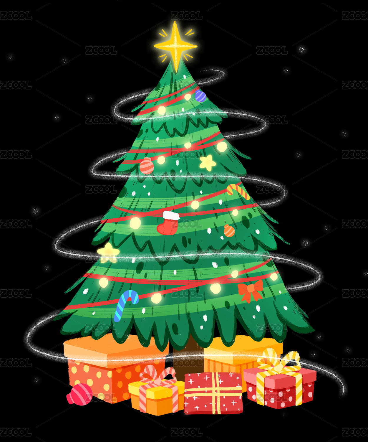 圣诞树插画素材礼物盒袜子权杖