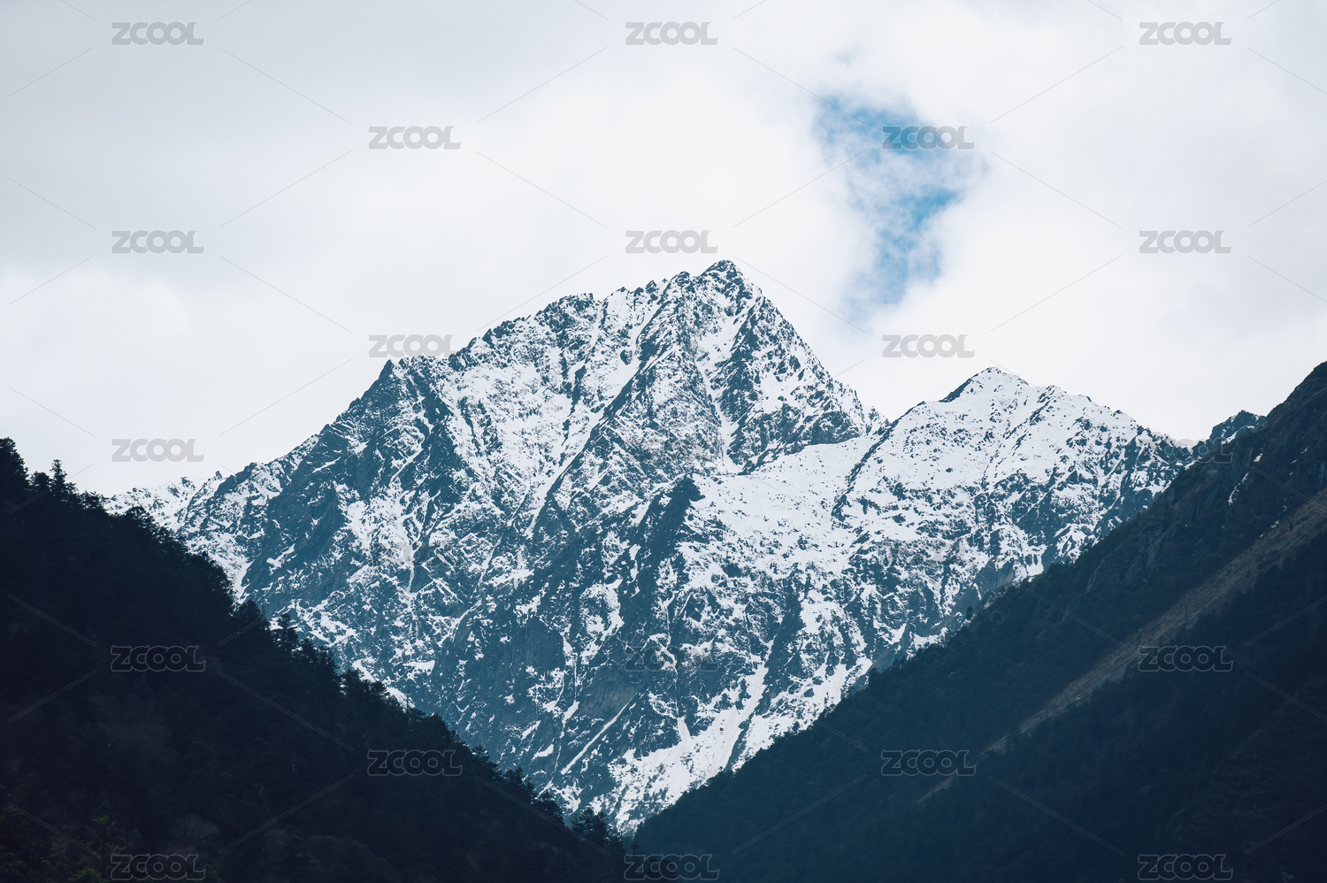 云南德钦雪山沟壑蓝天白云