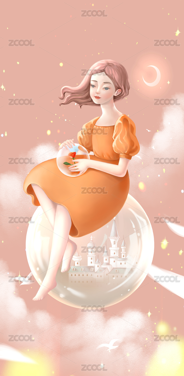 梦幻少女漫步星空云海