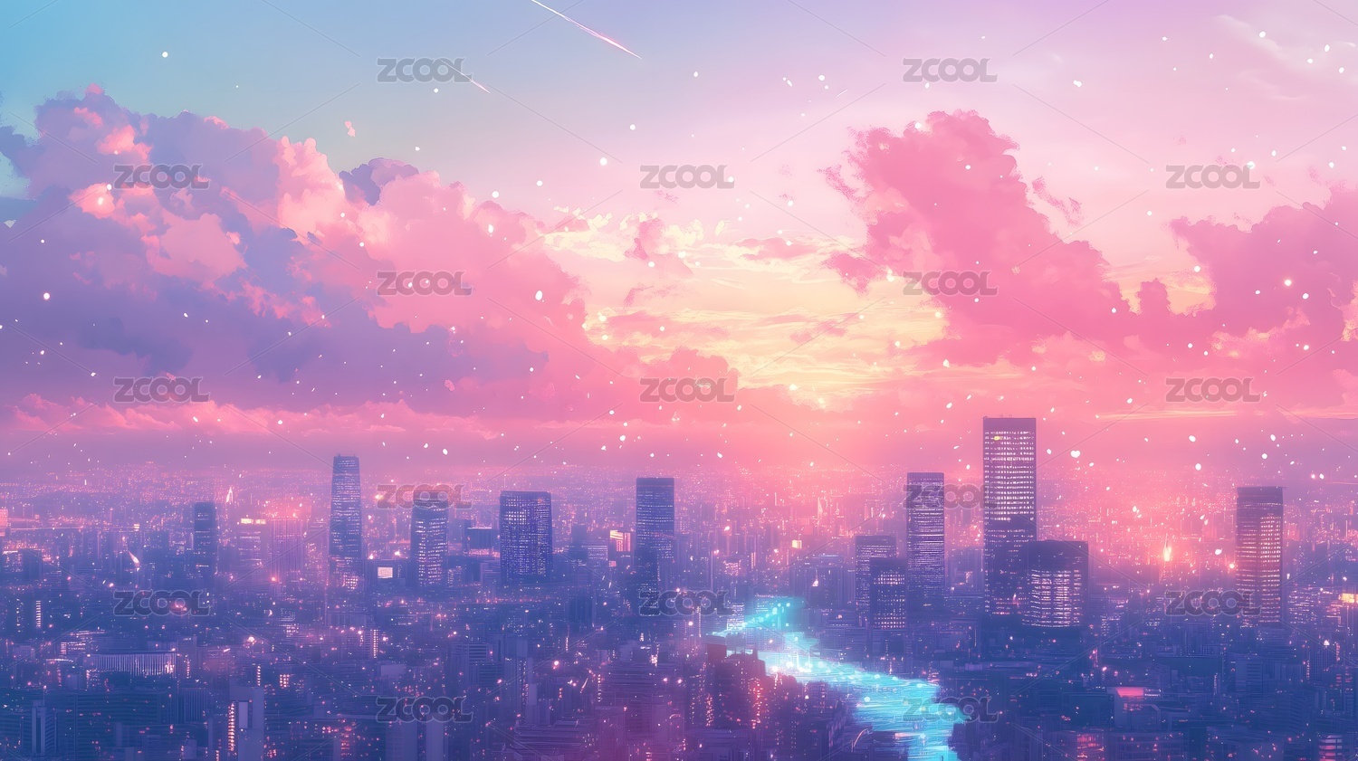 城市建筑天际线卡通漫画唯美创意设计艺术插