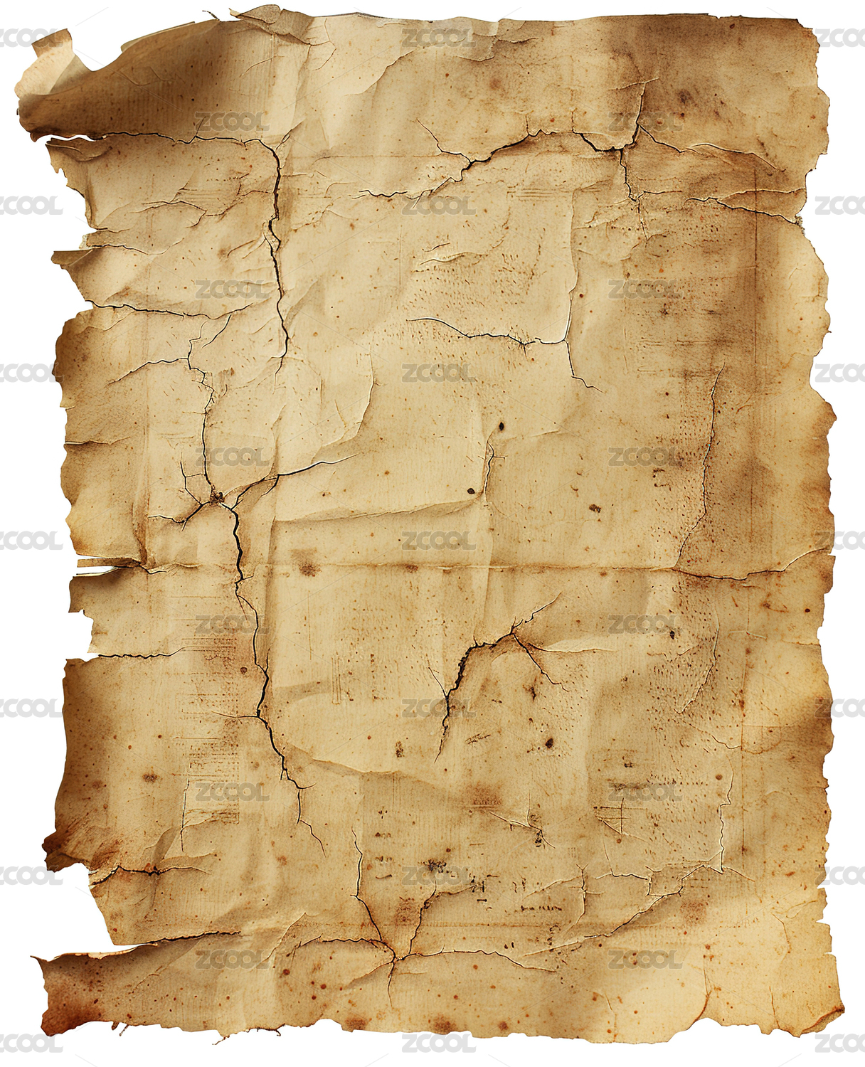 正上方白色背景下的旧纸