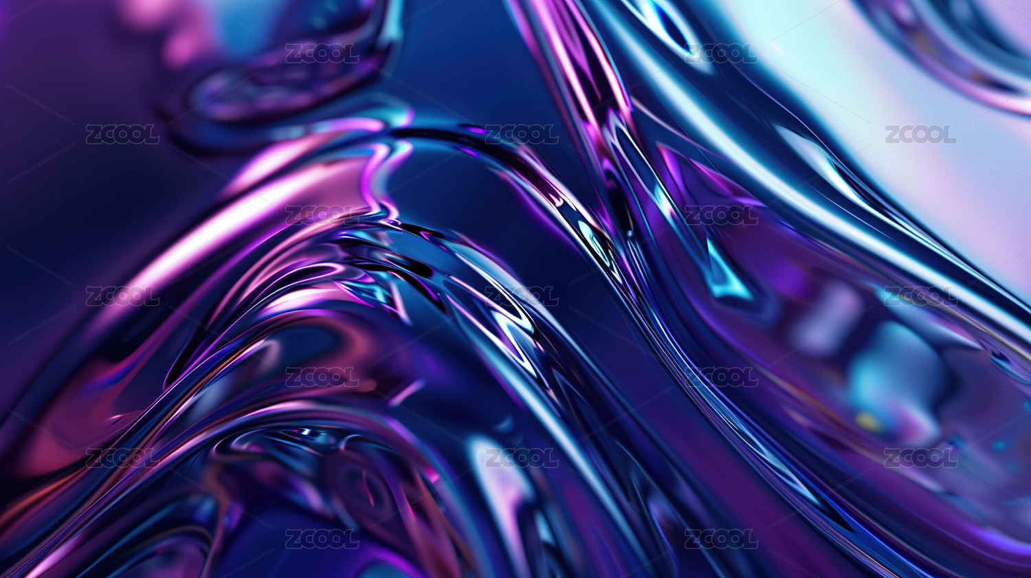 多彩渐变的流动液体,玻璃质感,抽象背景