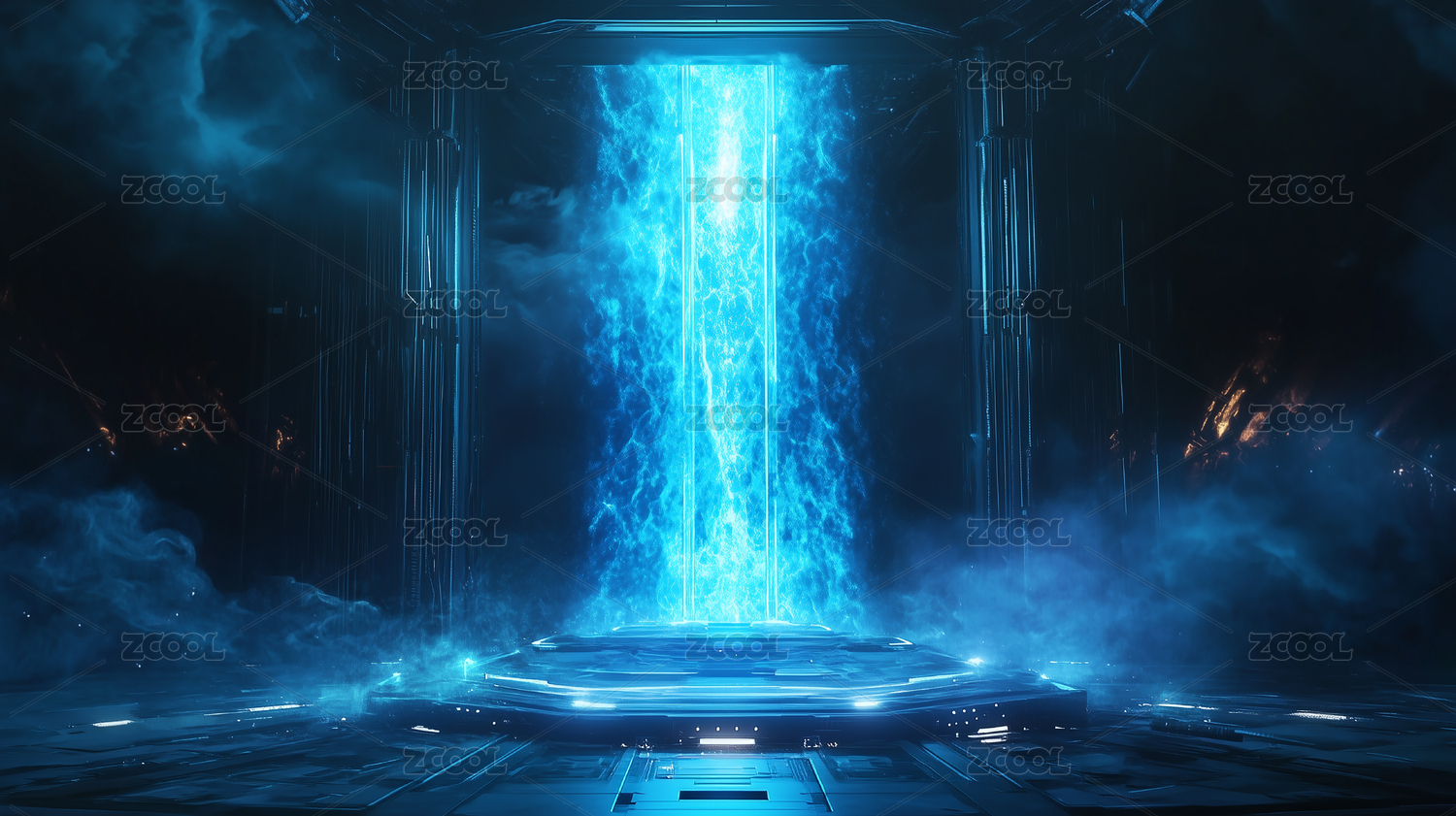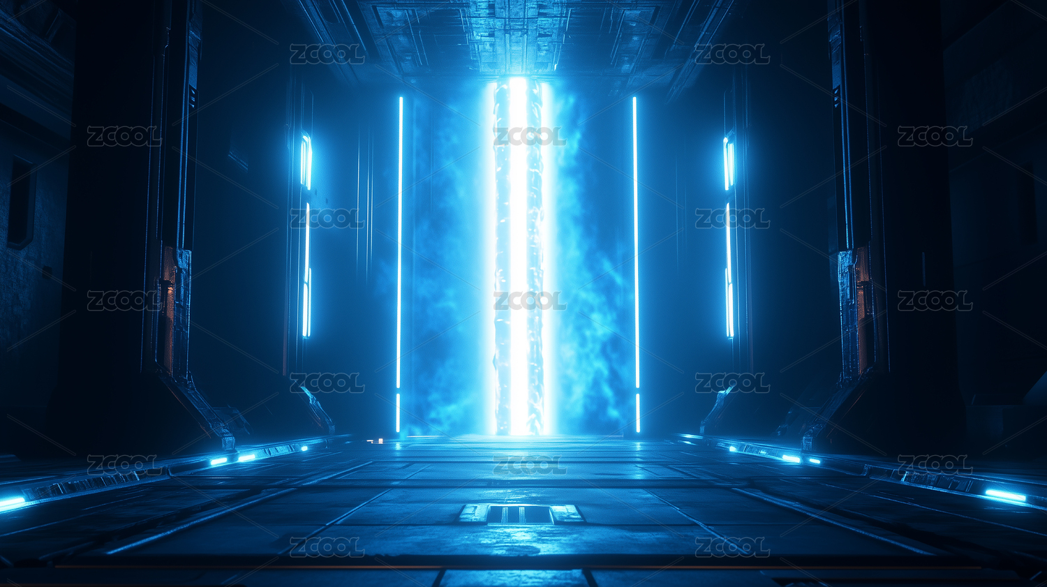 抽象霓虹灯矩阵科技感舞台赛博朋克3D插图