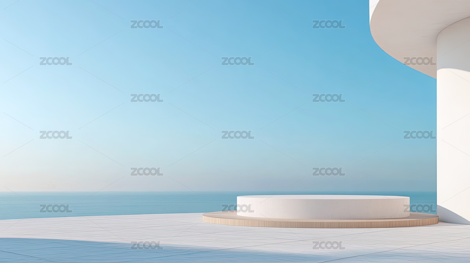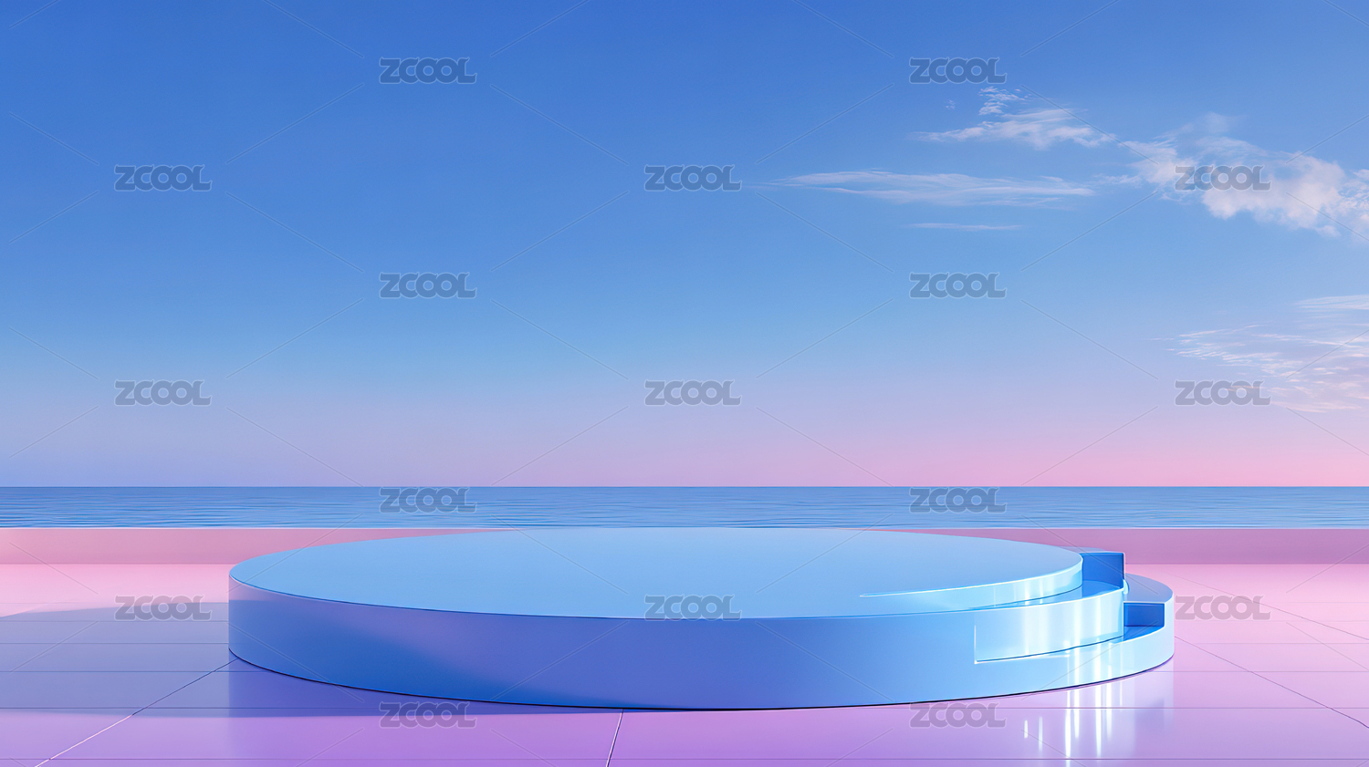 渐变色圆形平台与海天背景