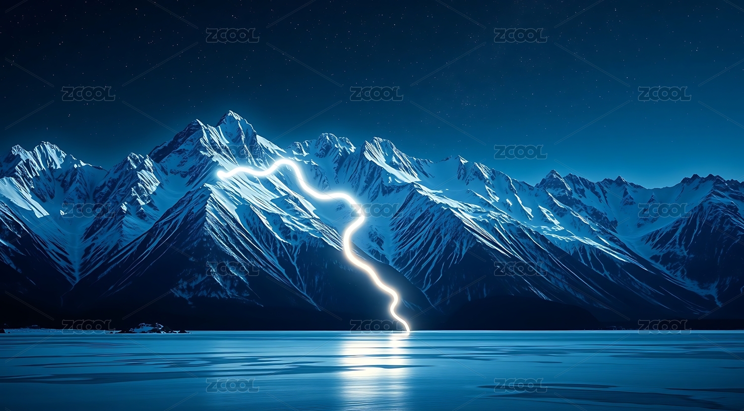 闪电照亮雪山之巅