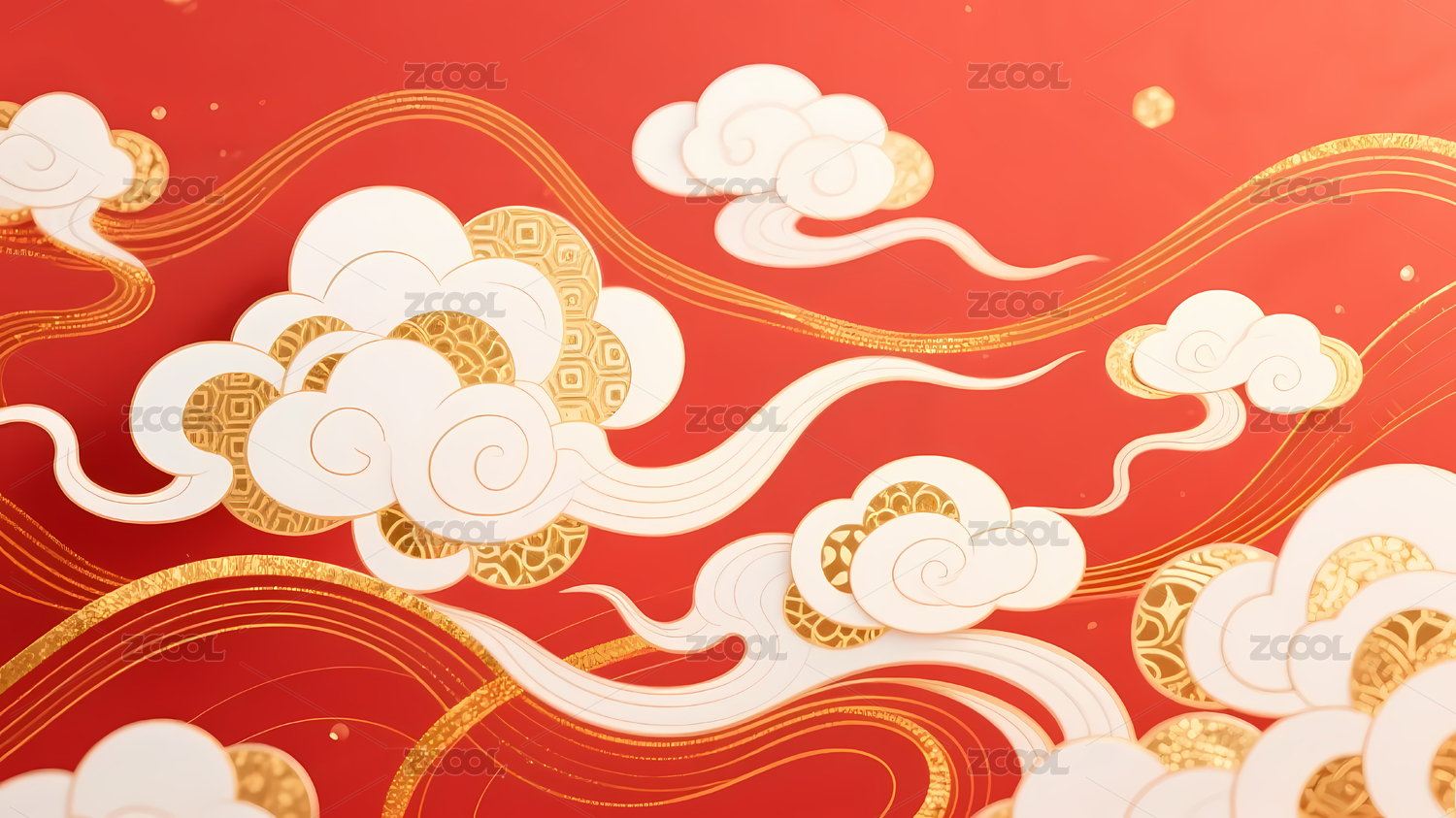 中国风节日新年红色金色祥云纹理立体背景
