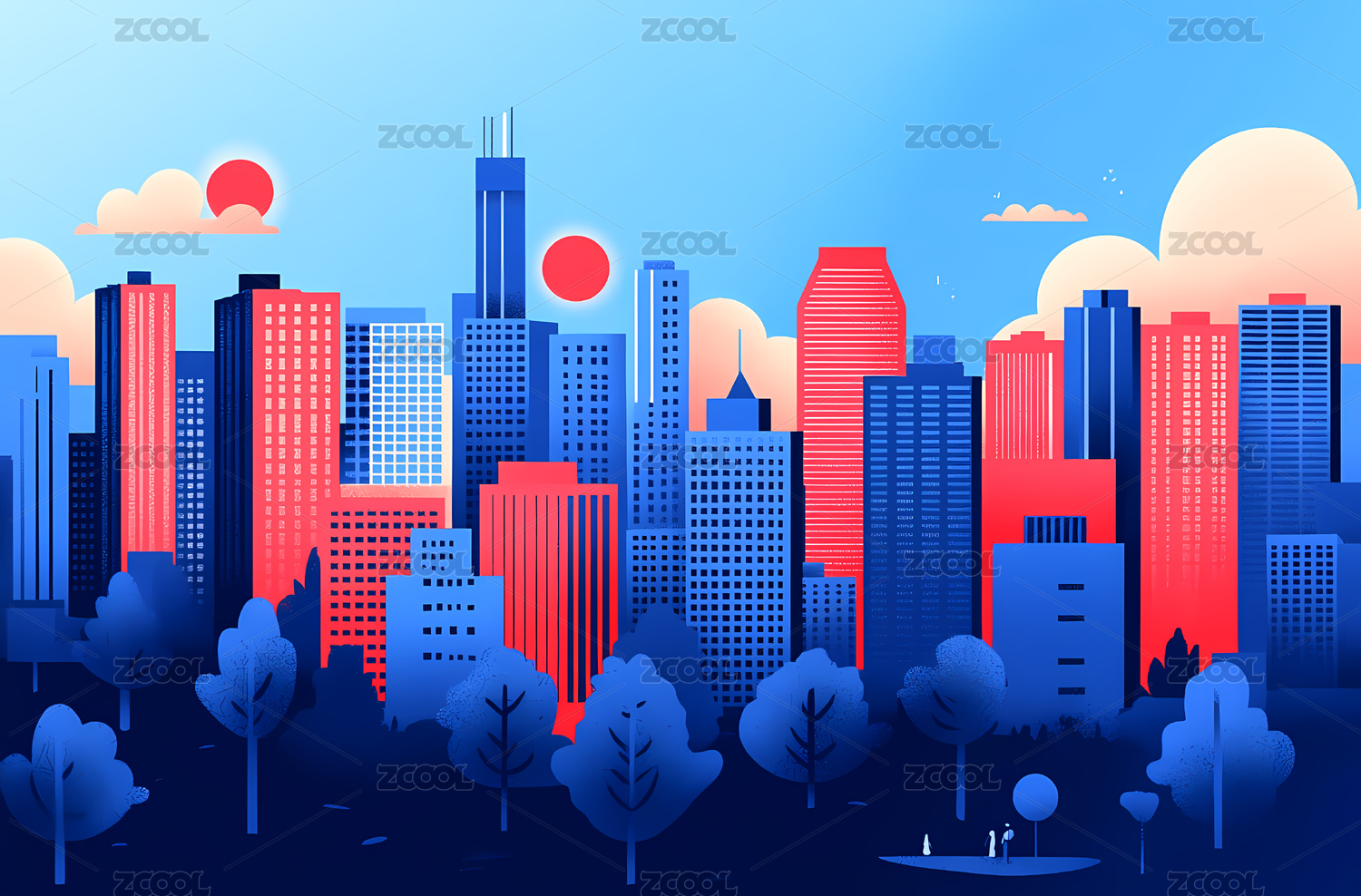 城市建筑群城市天际线建筑地标场景概念插图
