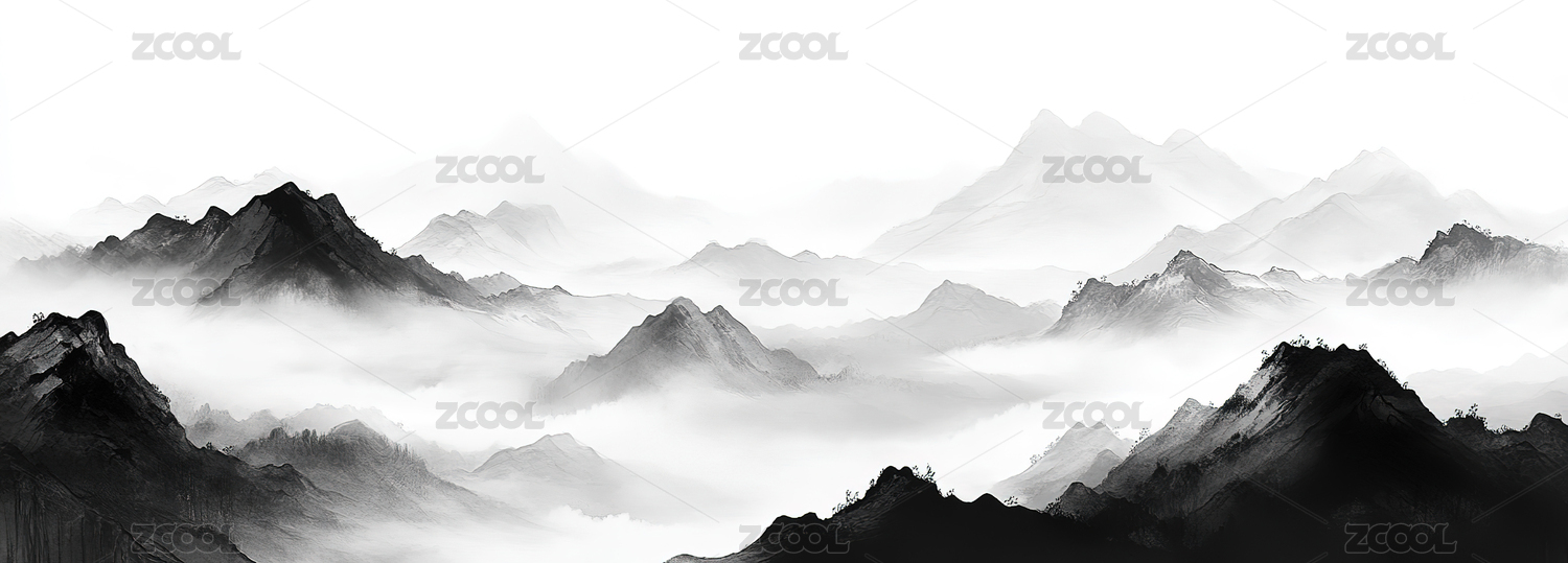 高山,风景,户外,天空,雾,自然,地形,自然美,水墨画,宁静