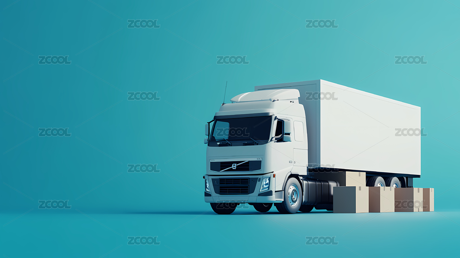 3D卡车货车运输车辆交通驾驶三维渲染插图