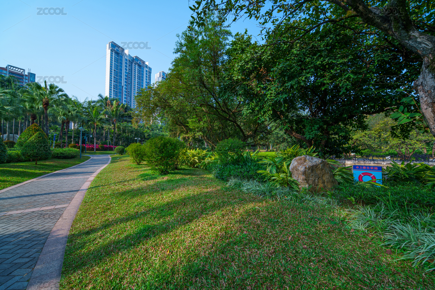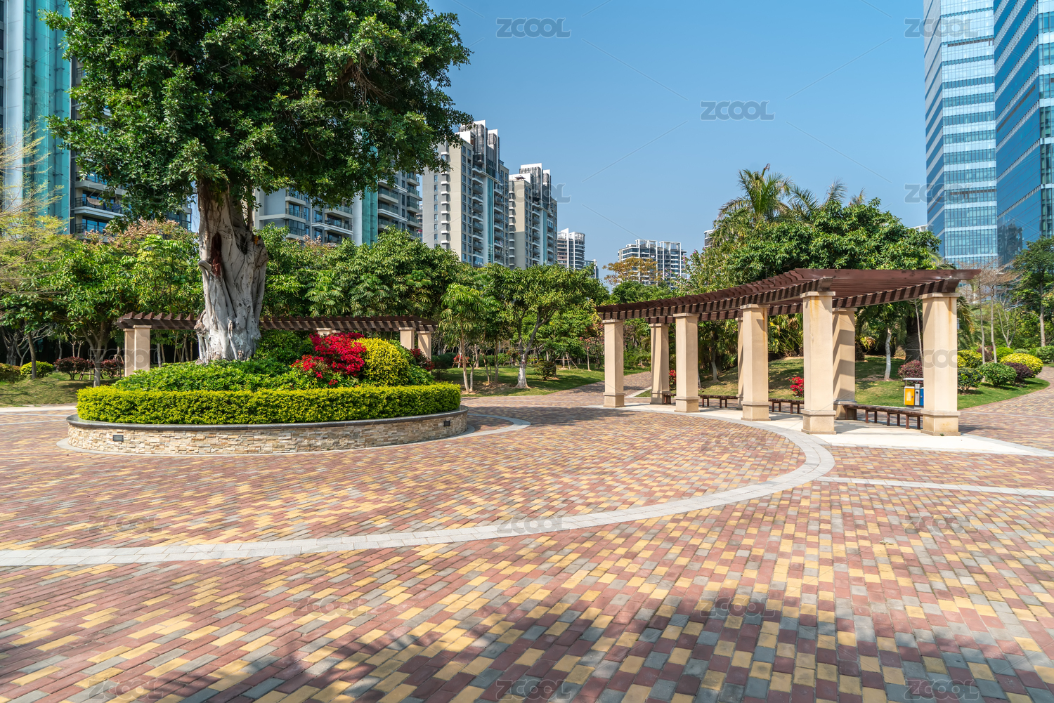 中国深圳市龙华区红山街道城市楼盘小区花园风景