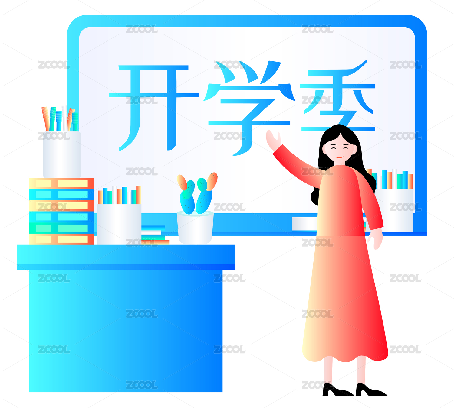 开学季简约炫彩科技风扁平插画素材