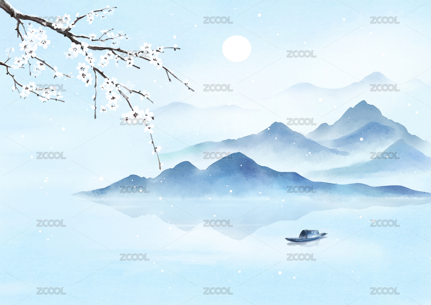 季节,冬天,冬季,风景,山,树,月亮,湖,地形,户外