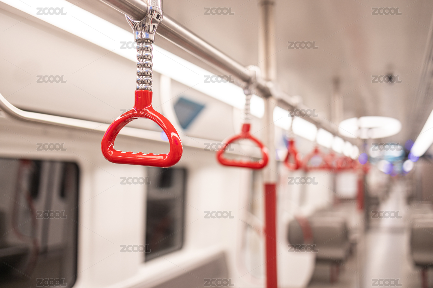 中国广东广州地铁18号线列车车厢环境与红色扶手