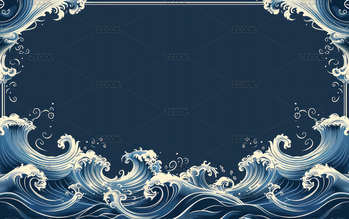 海浪,纹理,图案,传统,蓝色,水纹,装饰,艺术,绘画,商务