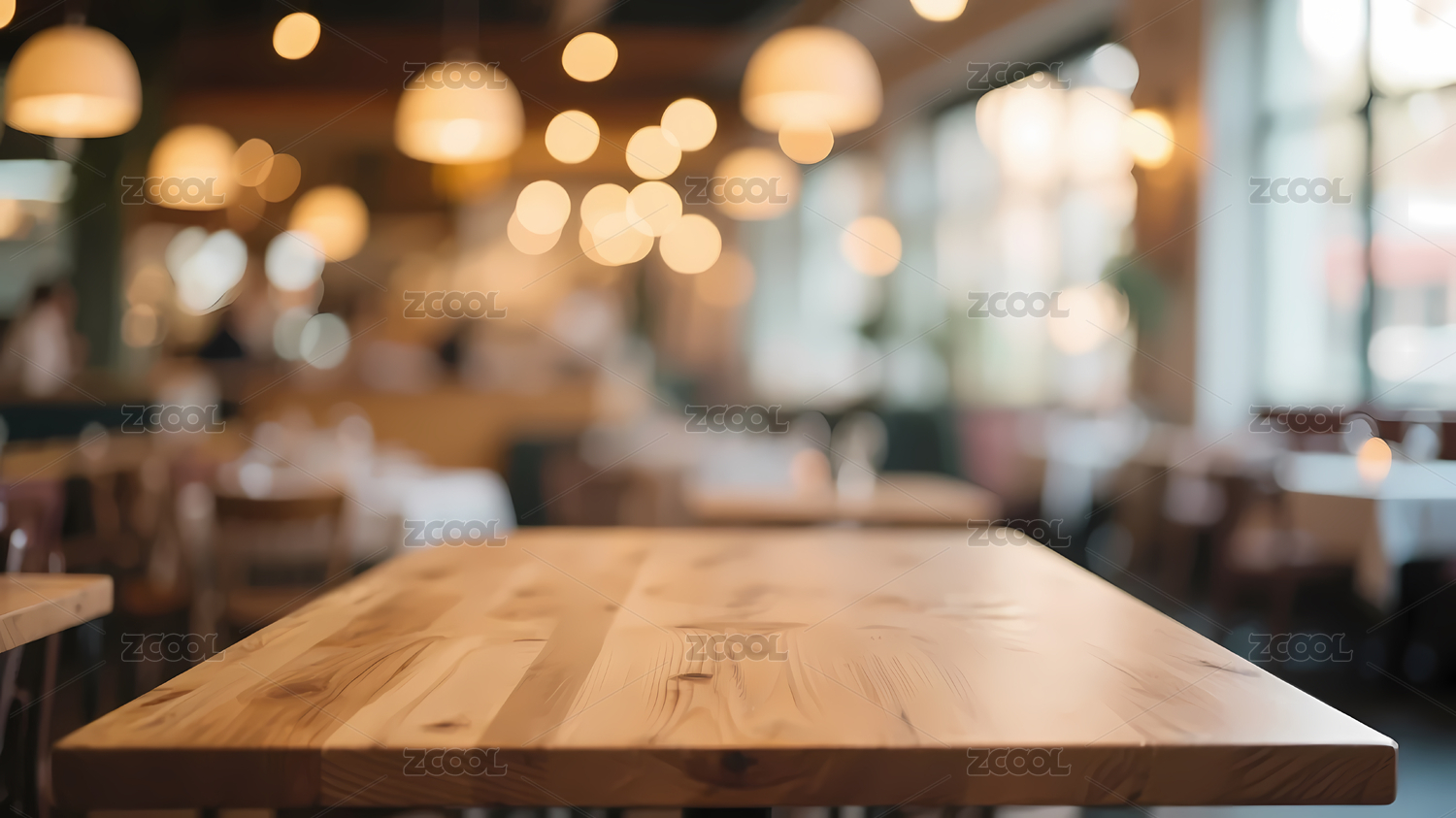 木质桌面餐厅灯光