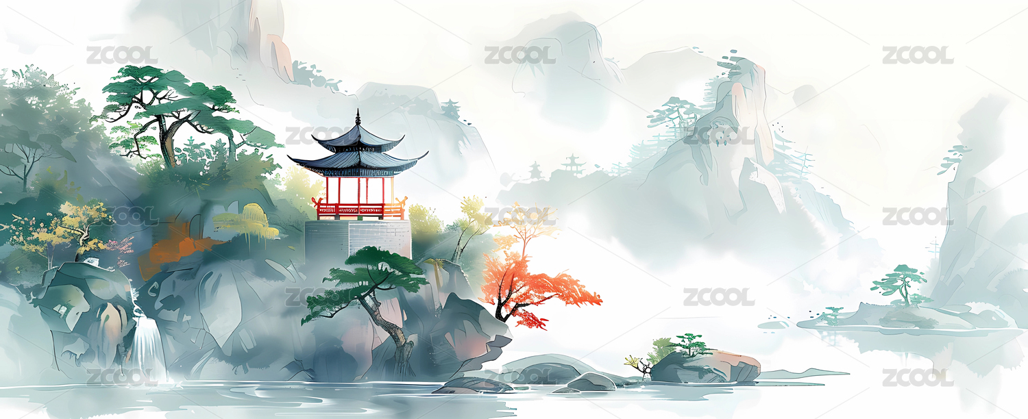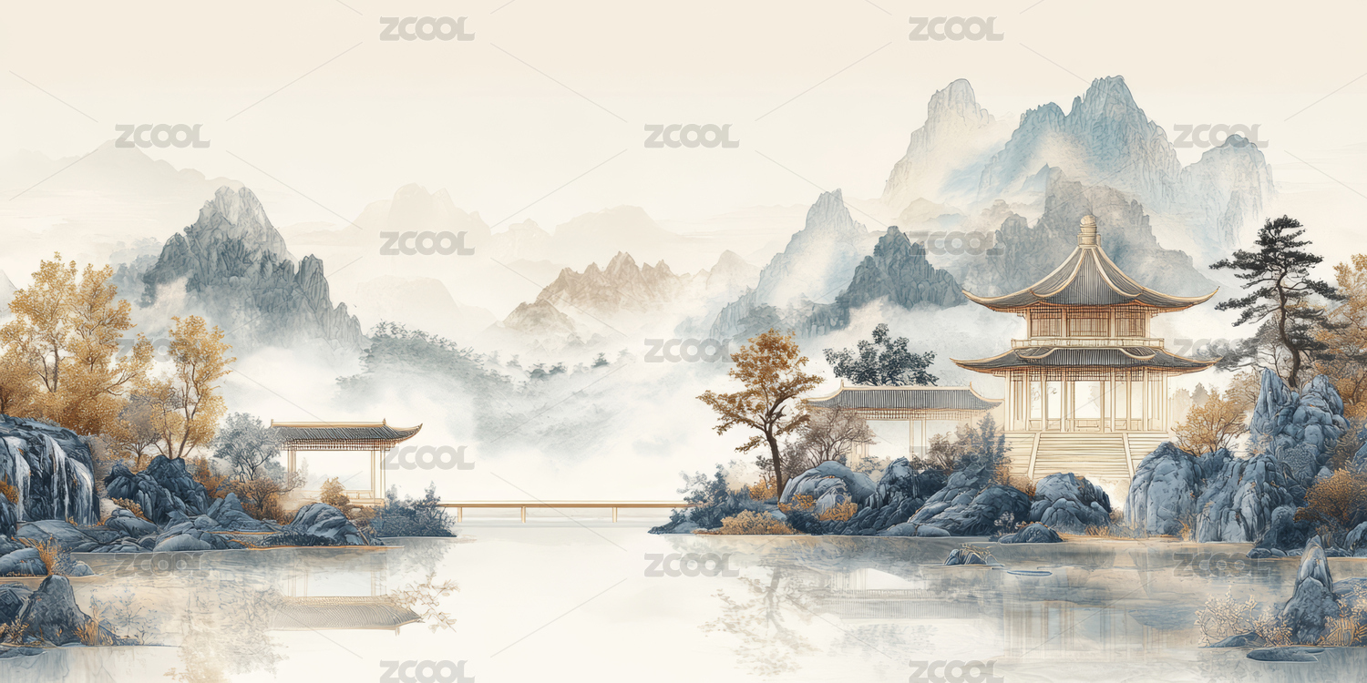 中国传统风格的极简山水画