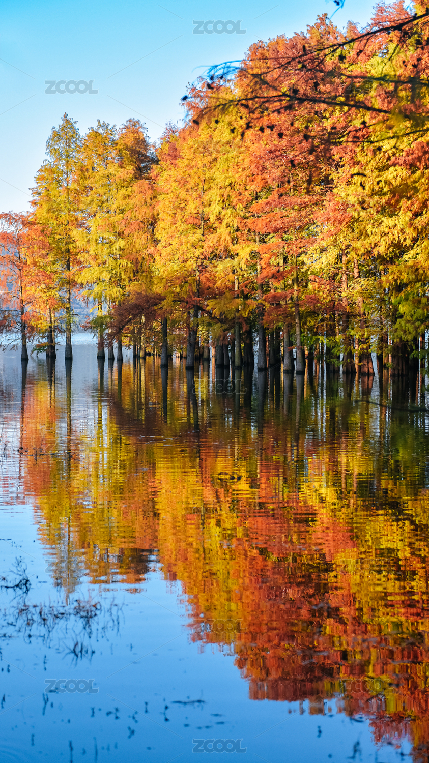 江苏南京明孝陵燕雀湖金秋水杉林倒影