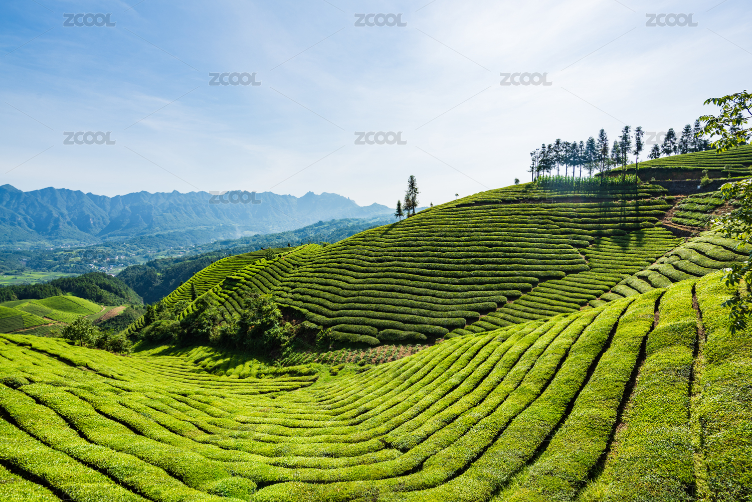 宜宾珙县鹿鸣茶场蜿蜒茶山蓝天白云