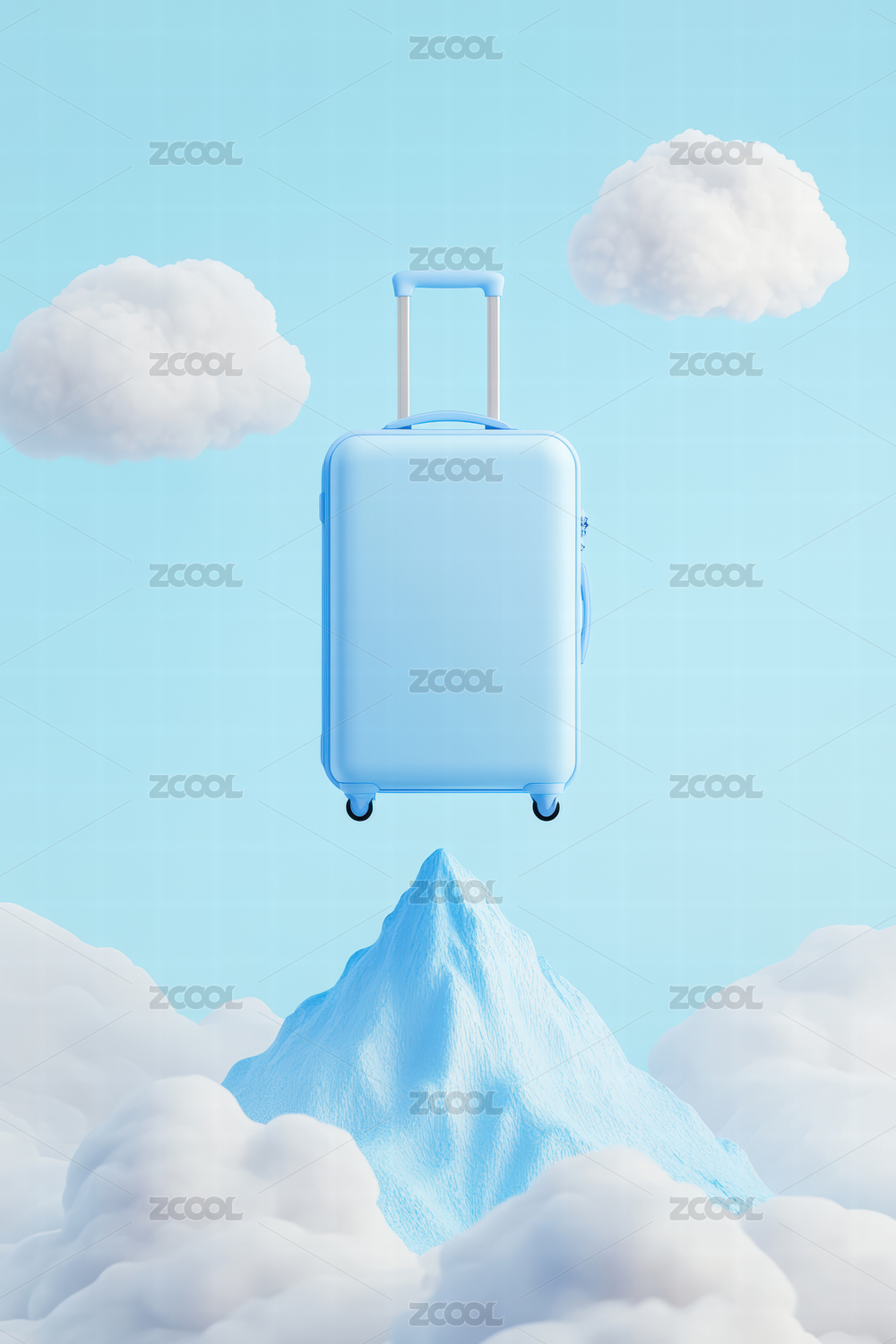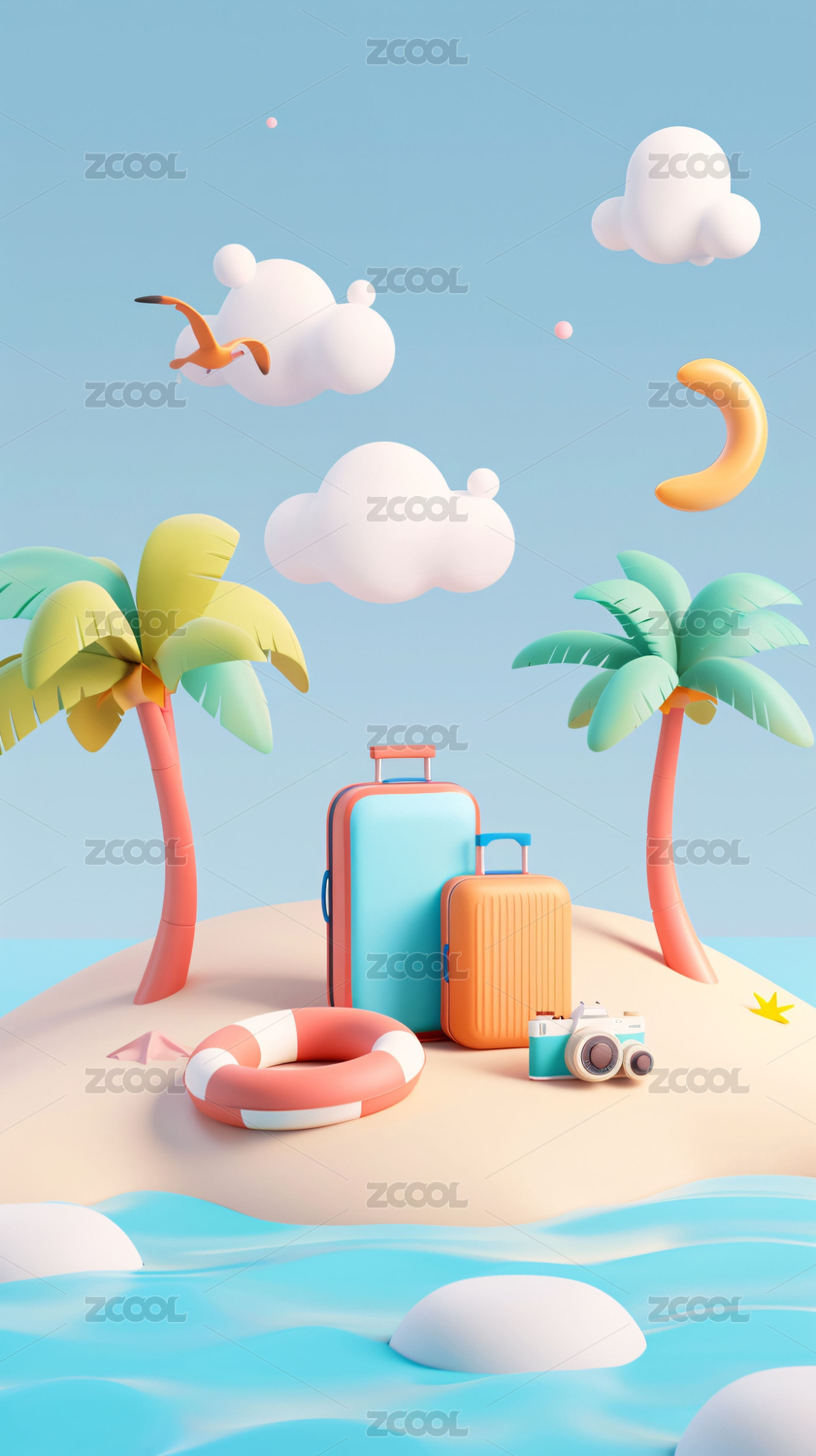 户外旅行3D旅游旅行箱度假三维渲染插画