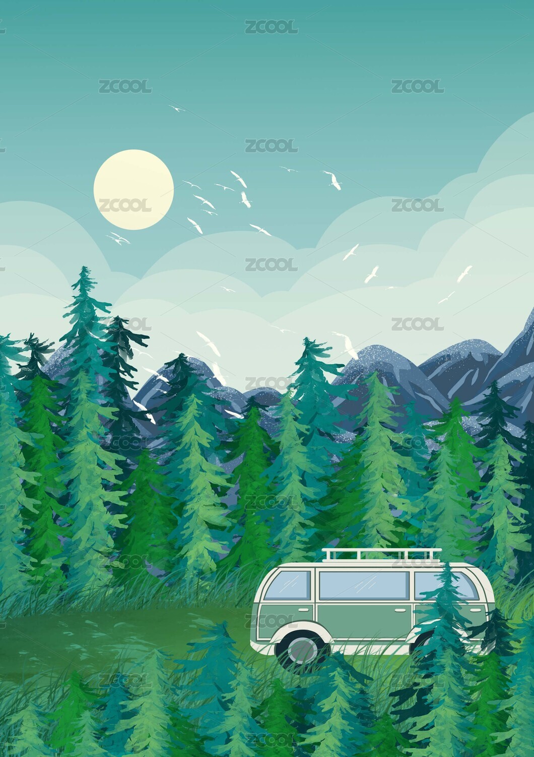 汽车旅游假期自驾游夏令营户外出行放假背景