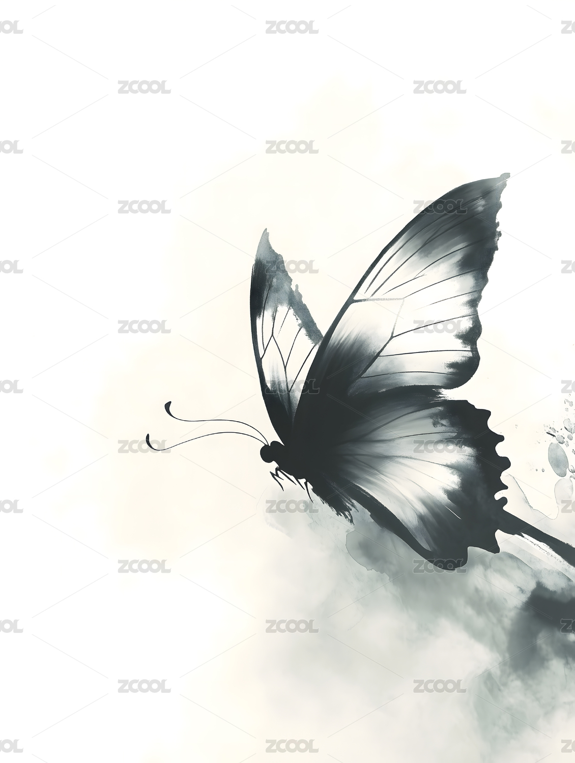 海报,背景,元素,壁纸,素材,花,水墨,蝴蝶,飞舞,中国风