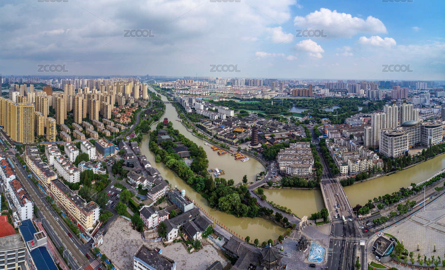江苏省淮安市盐河穿城而过的淮阴区城市风光