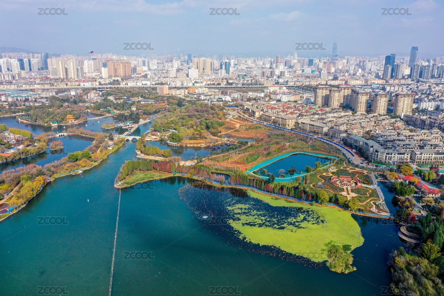 航拍云南昆明滇池呈贡斗南湿地公园生态湖泊