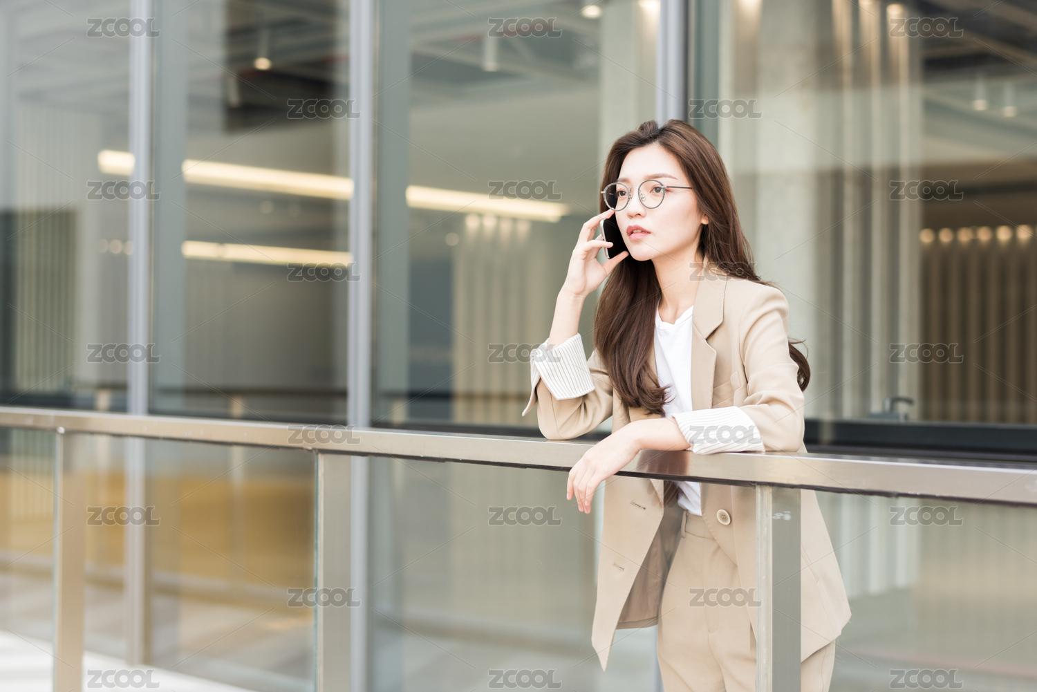 年轻女白领在楼梯上打电话