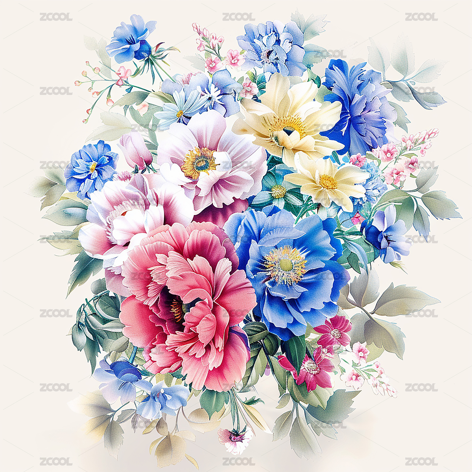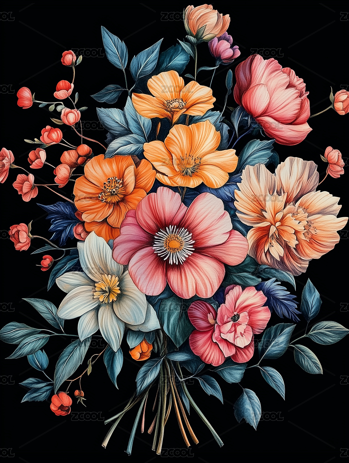 AIGC202402,植物,花卉,鲜花,花朵,复古,版画,插画