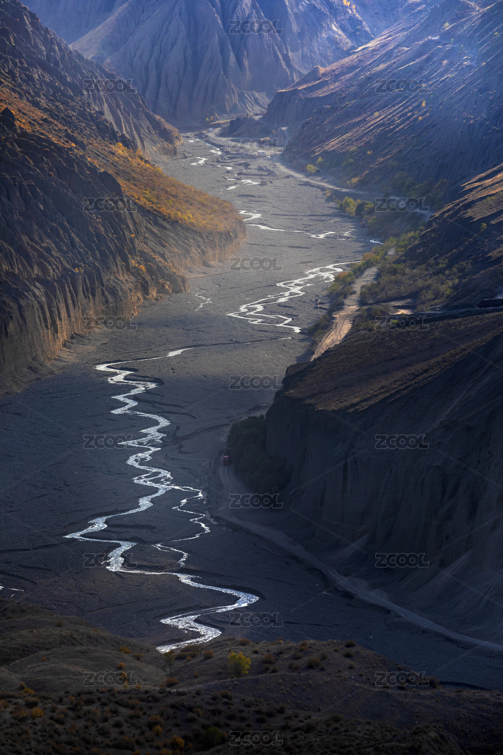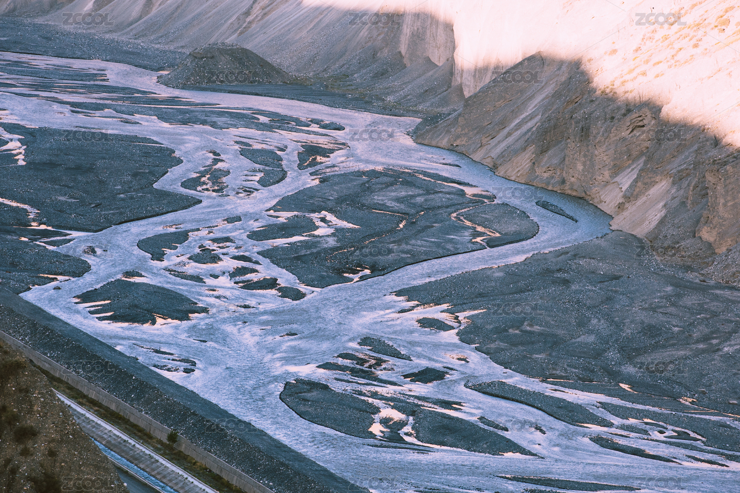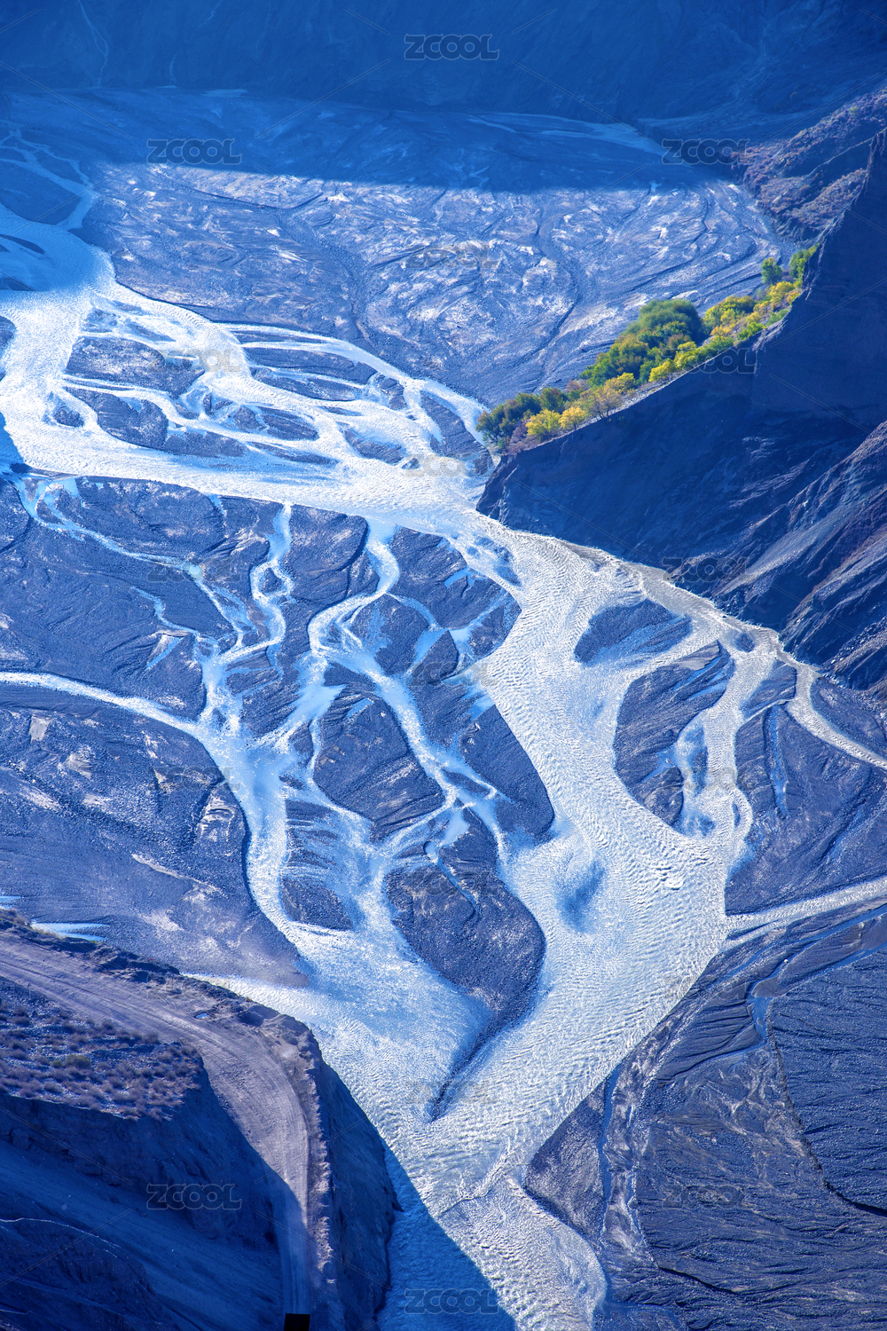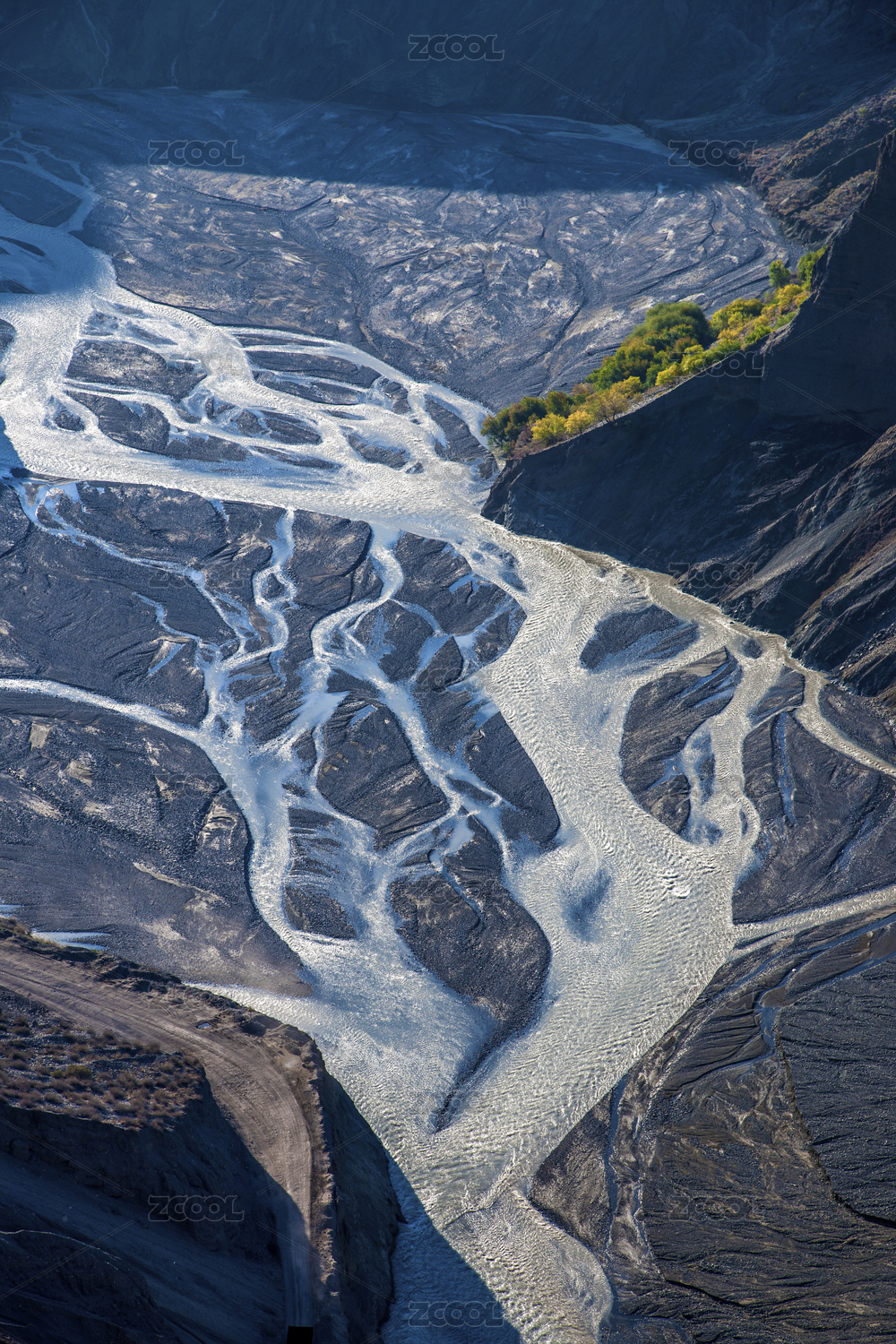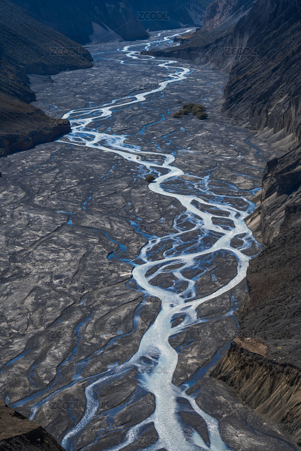 中国新疆安集海大峡谷谷底冲击成蜘蛛网形河流