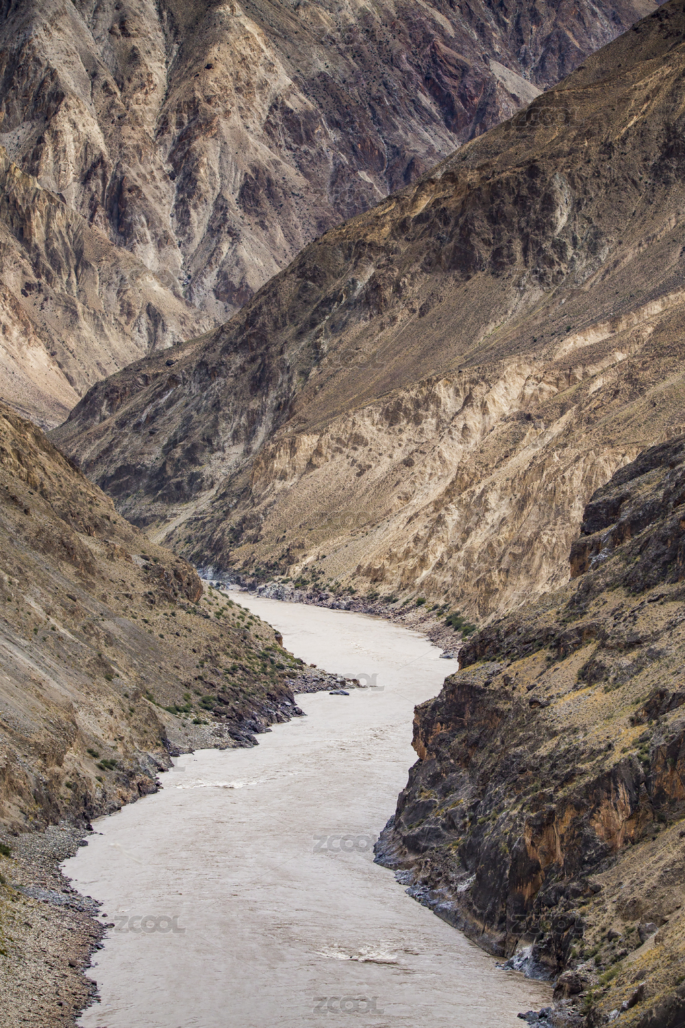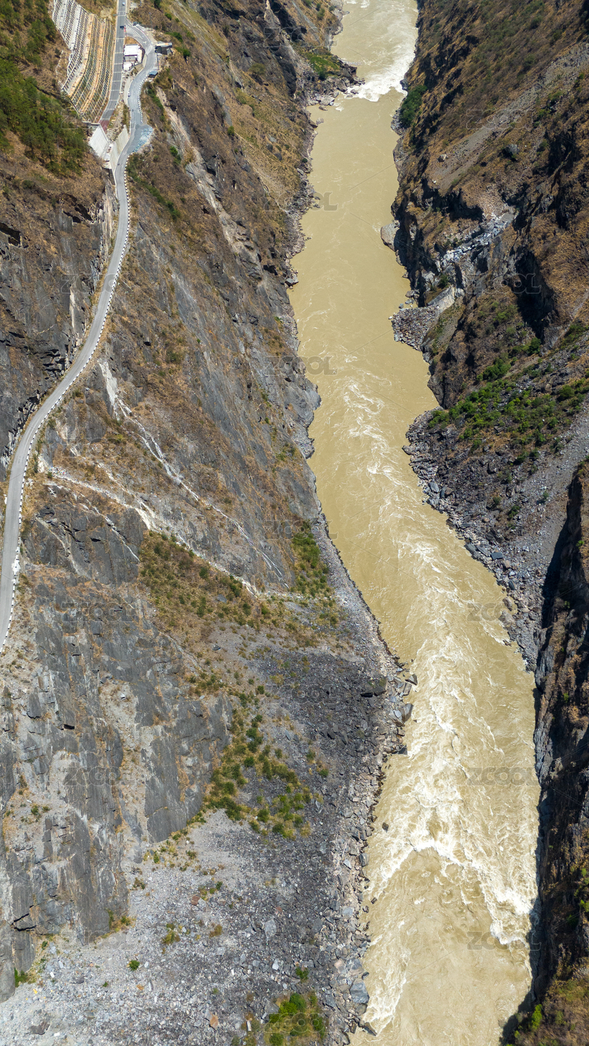 中国前往梅里雪山西坡甲应村路上俯视玉曲河