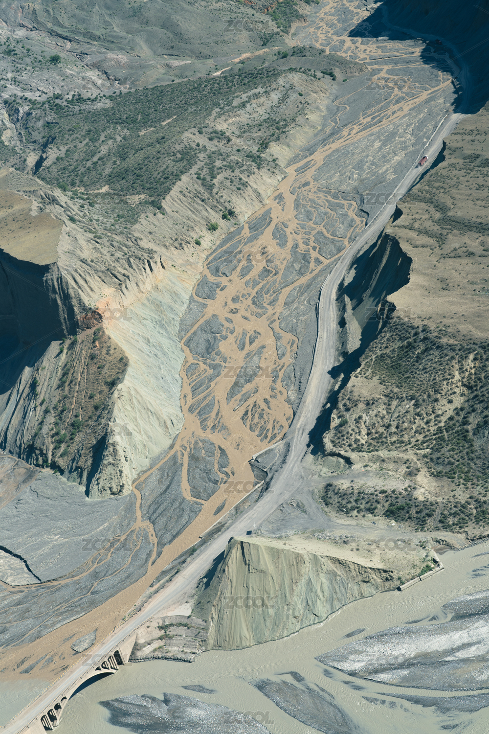 中国新疆安集海大峡谷底冲击成蜘蛛网形河流