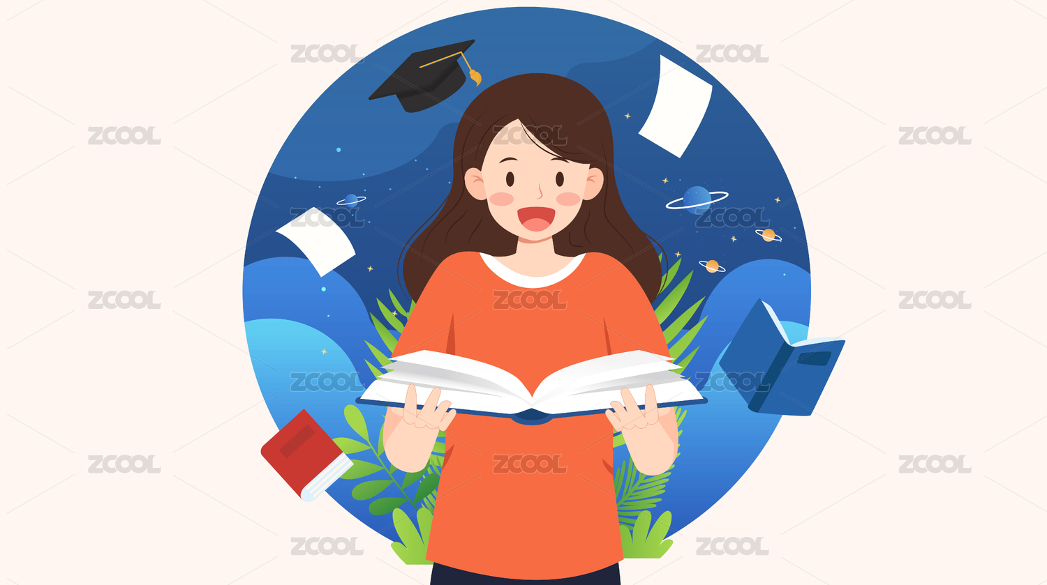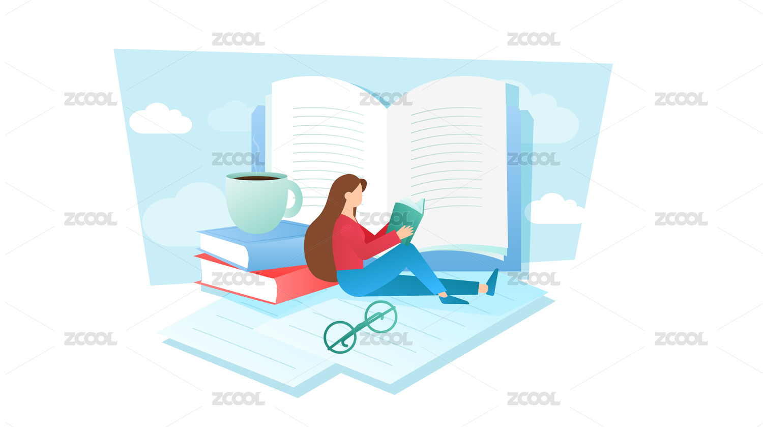 扁平插画,扁平,商业插画,运营,媒体,海报,阅读,女性,女孩,女生