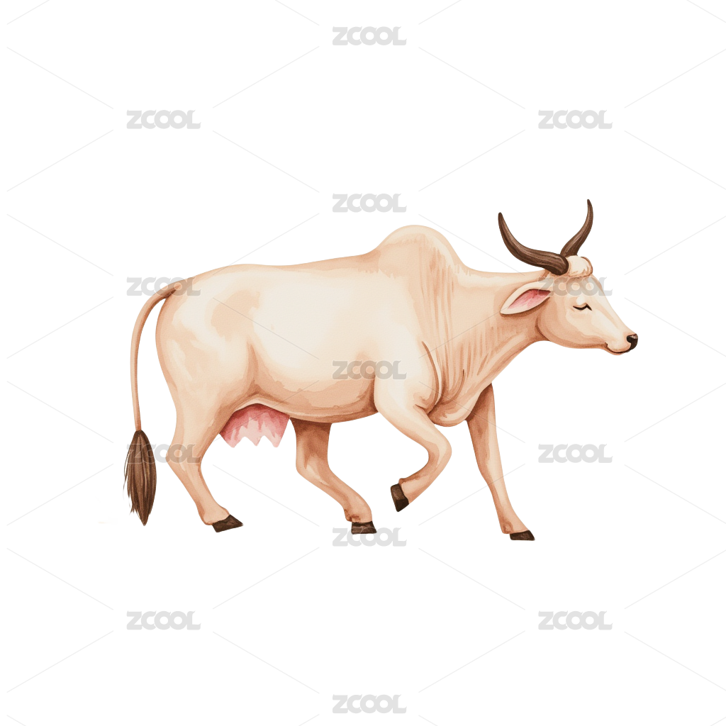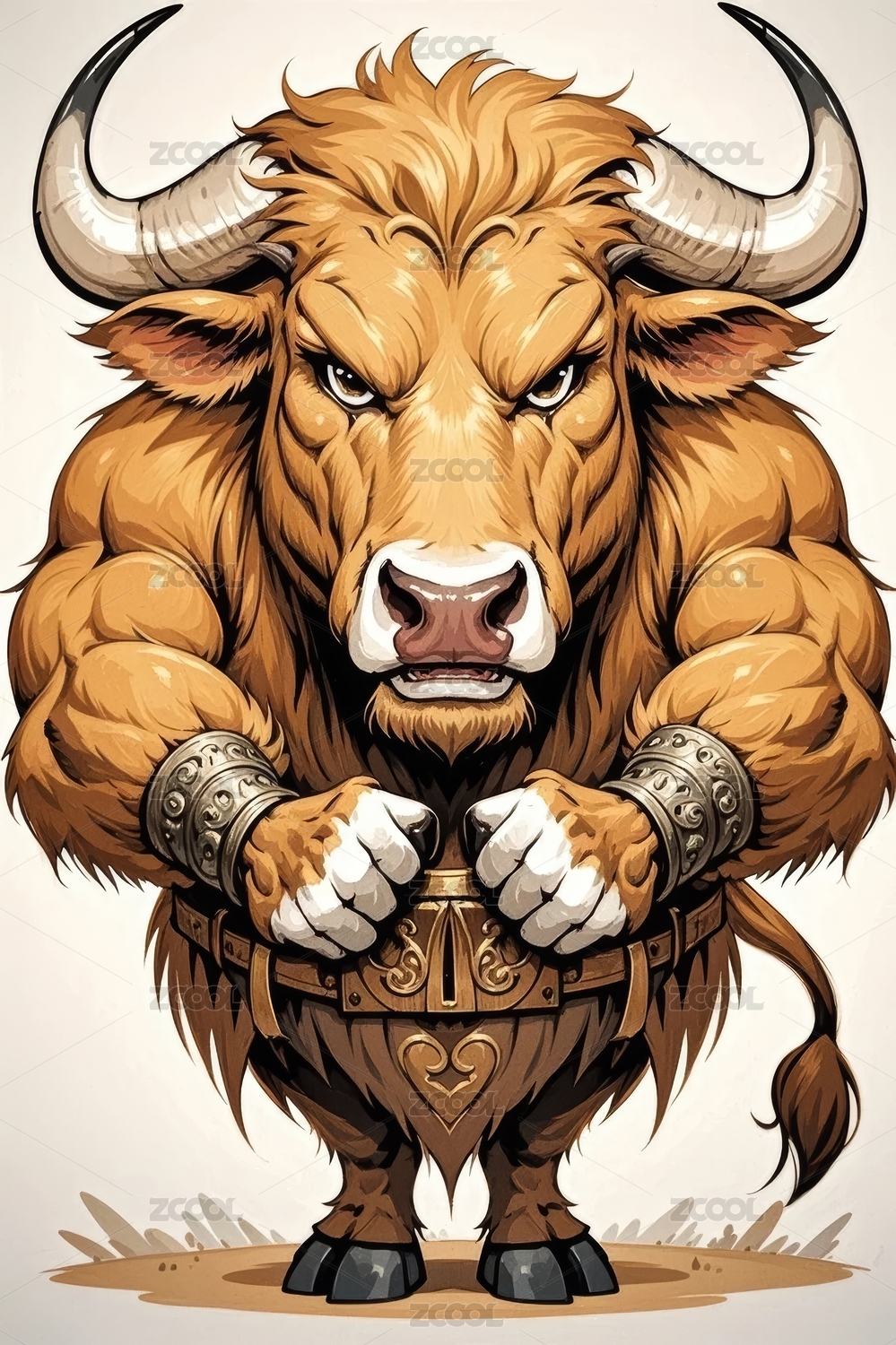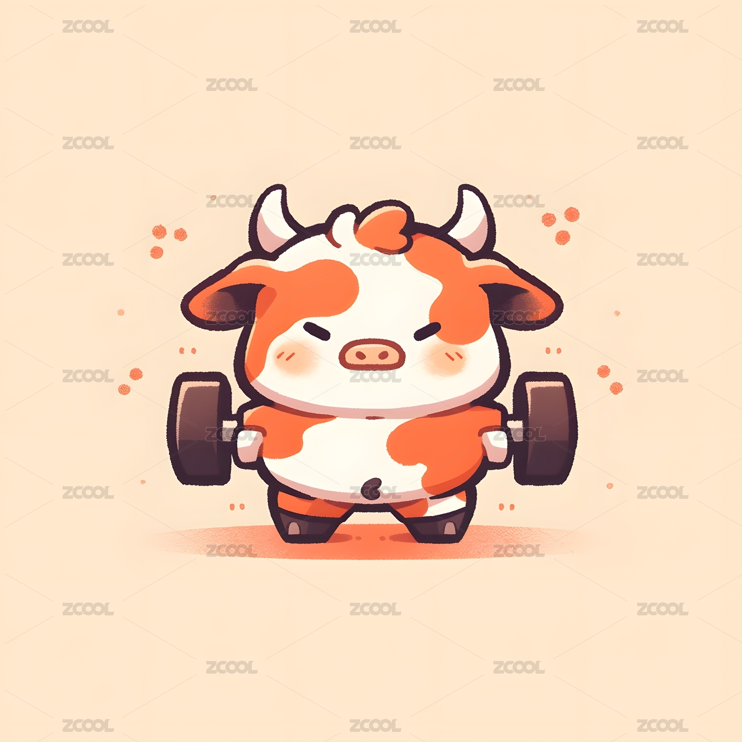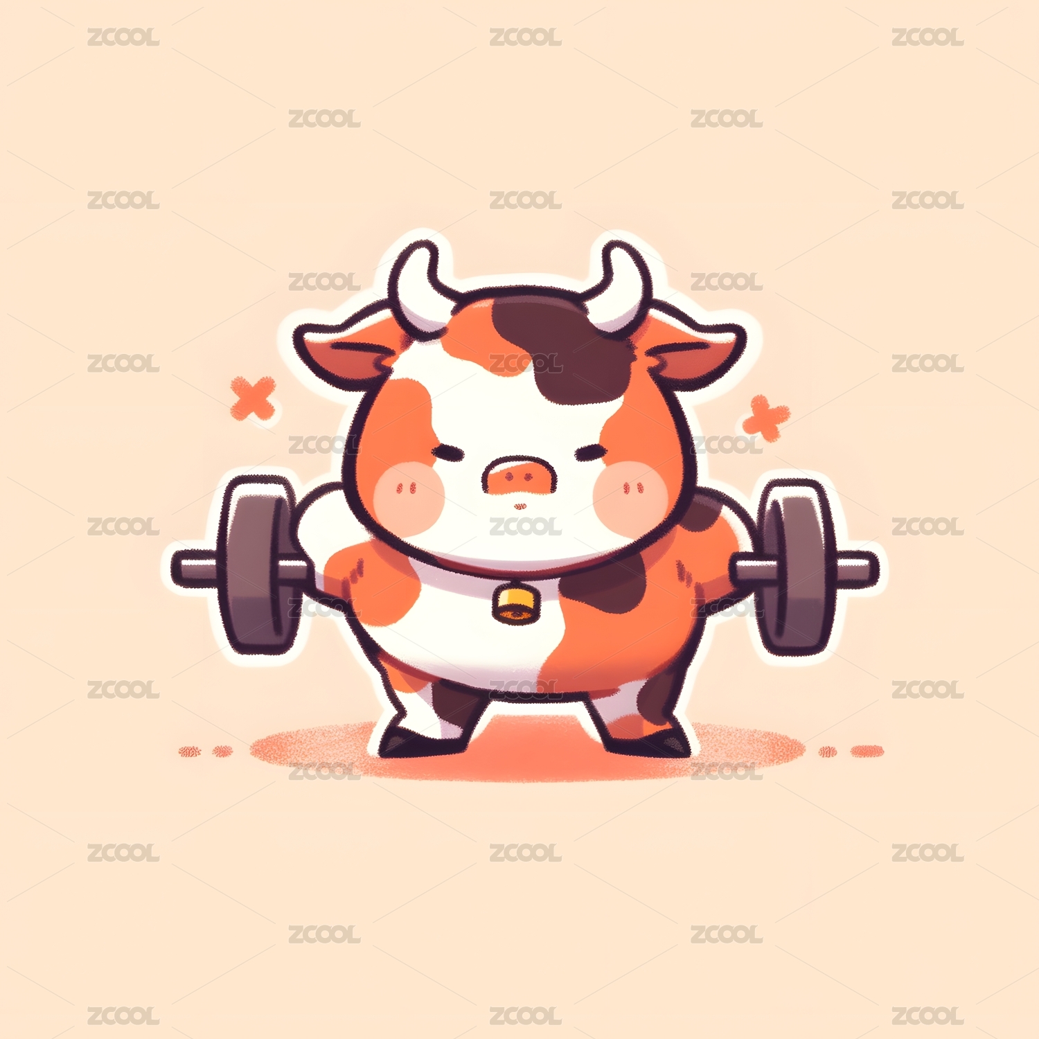简单风格卡通牛举起杠铃的装饰印花插画图案