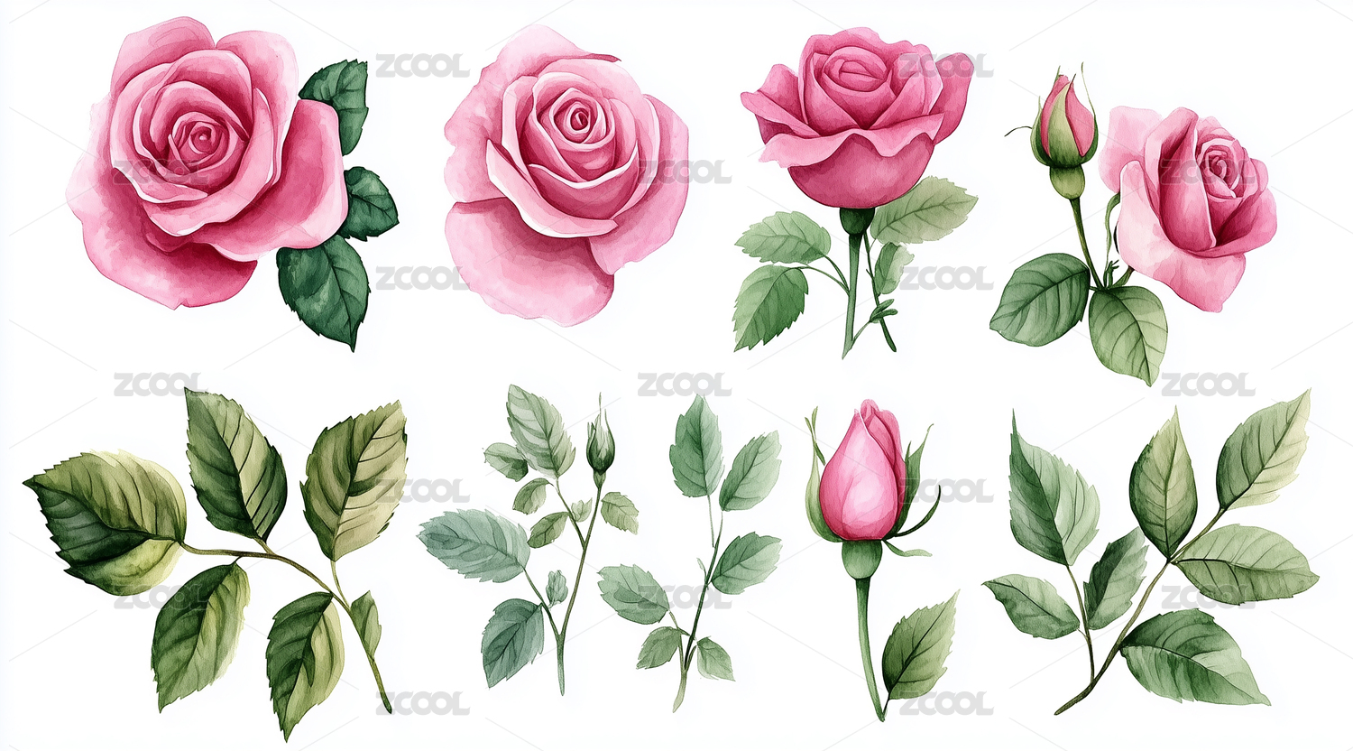黄色玫瑰花,插画,优雅,高贵,花卉,植物,花瓣,叶片,茎干,花蕾