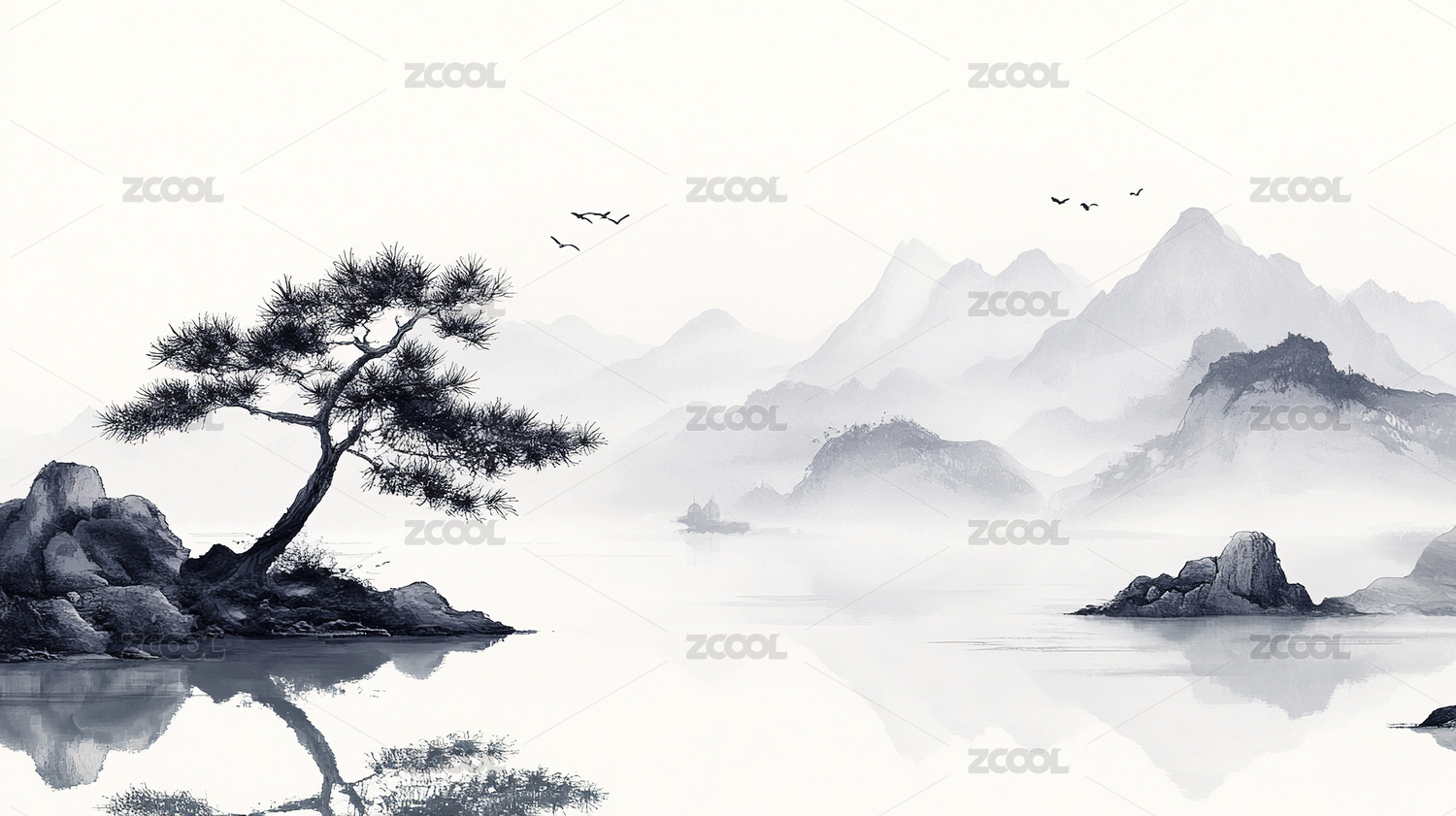 简约风水墨山水