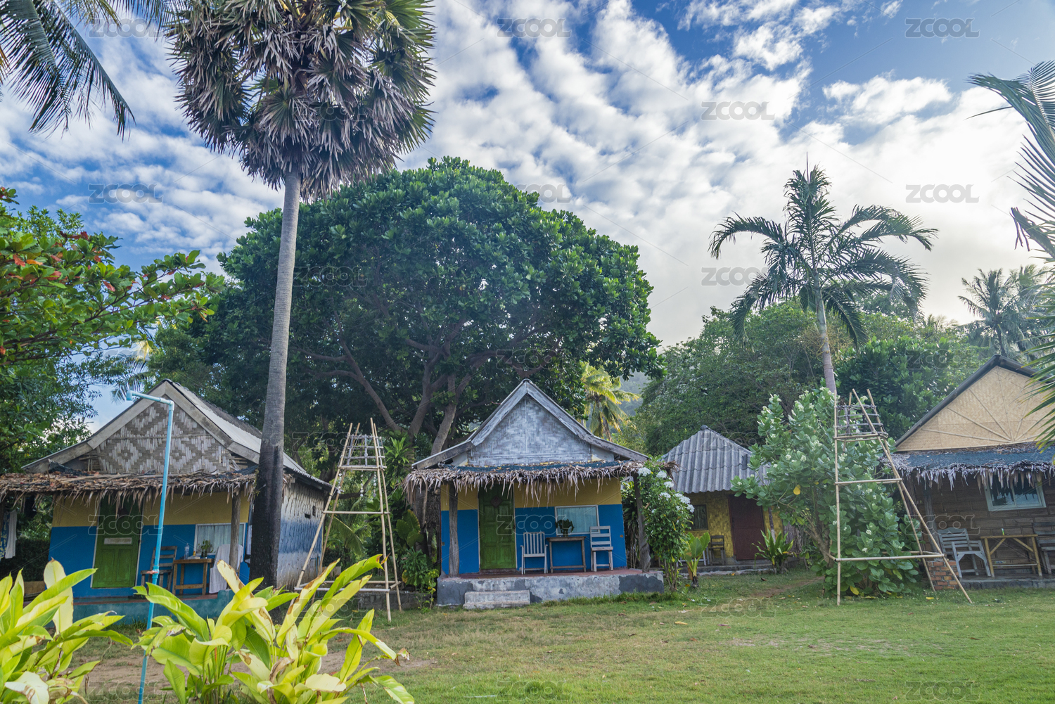 龙目岛海滩茅草屋