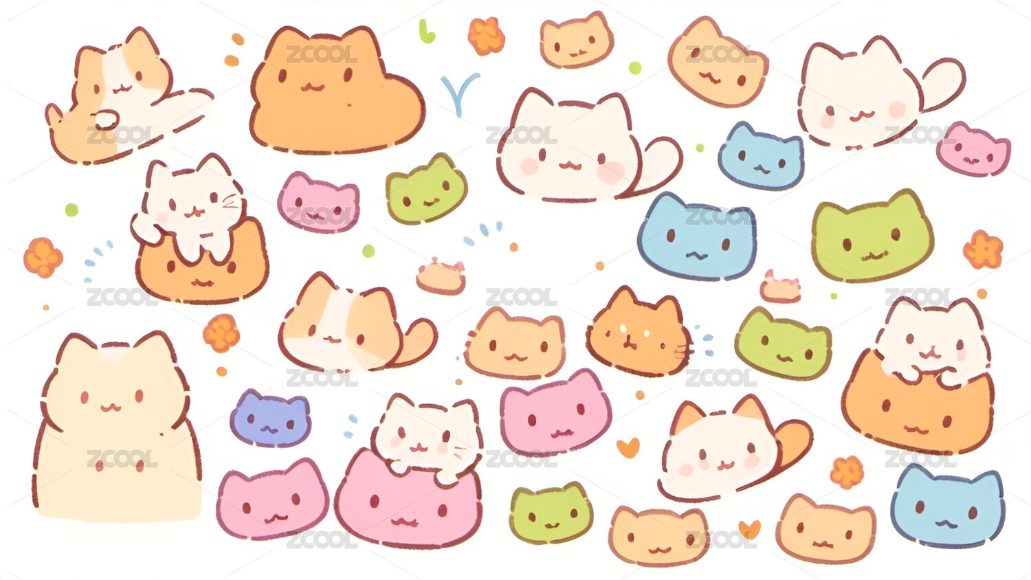 猫咪插画可爱宠物动物套装矢量图猫动物图案