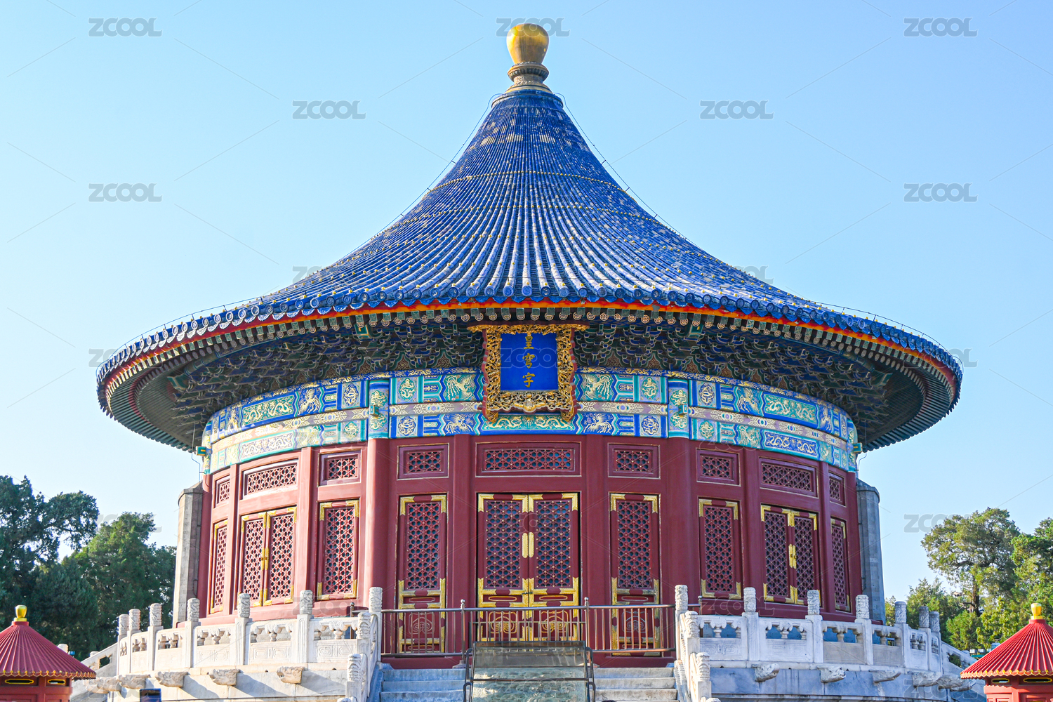 中国北京著名的天坛古建筑群和北京城市风光天际线