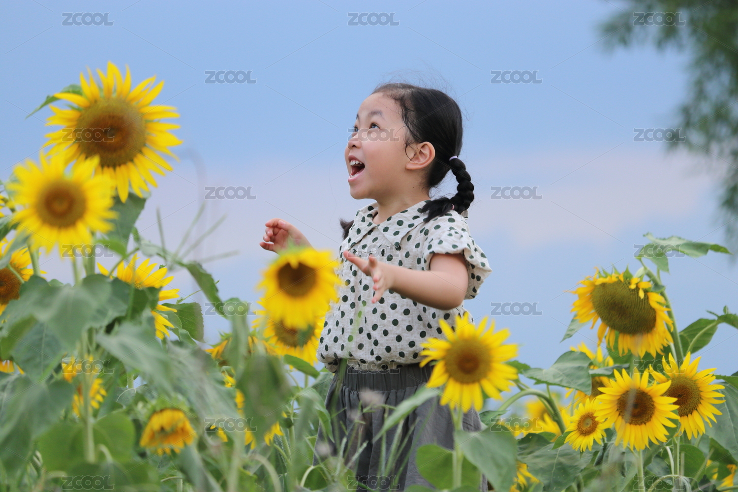向日葵花田中玩耍的女孩