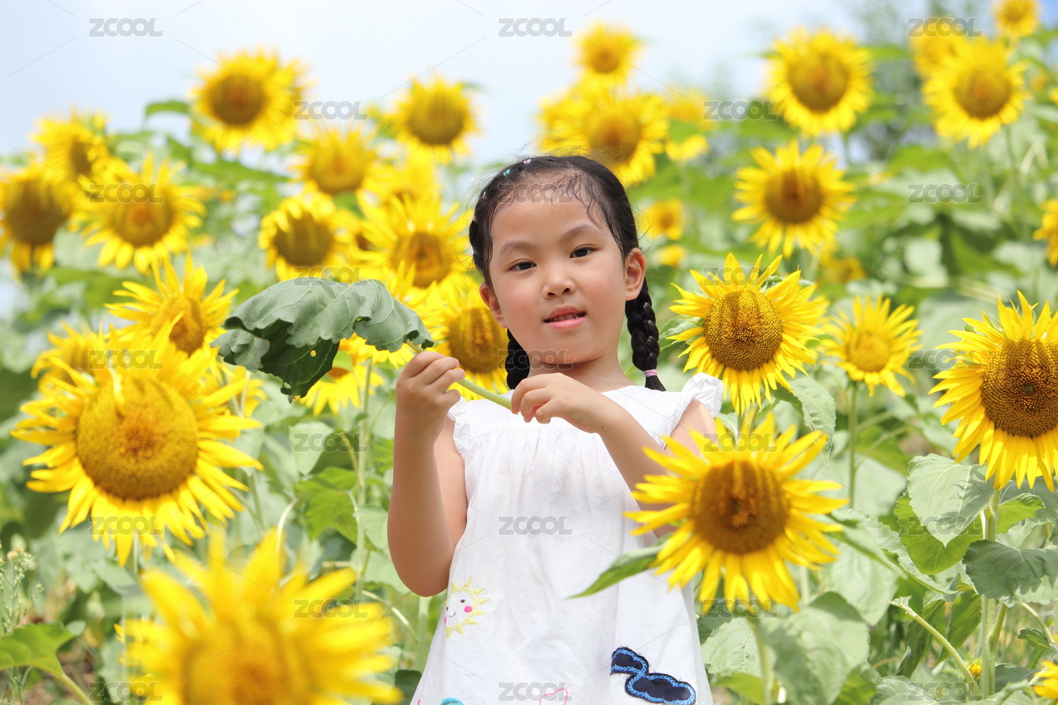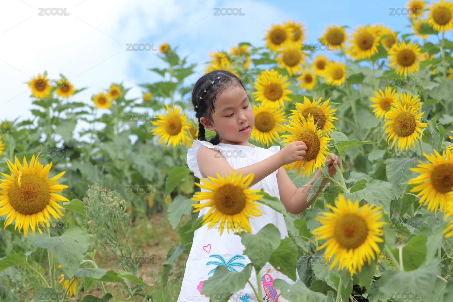 向日葵花田中的女孩