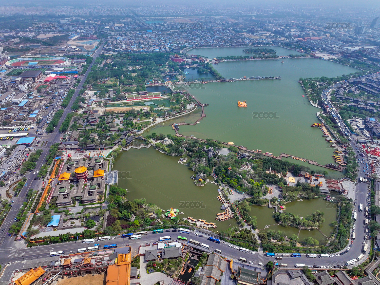 中国,河南省,开封市,清明上河园,建筑物,园林建筑,自然景观,户外,无人,航拍