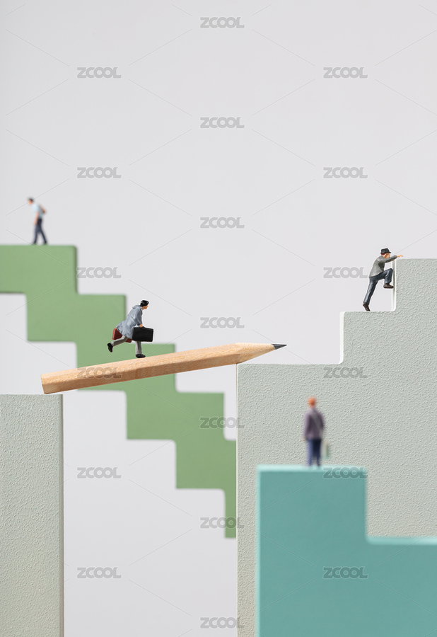 微缩创意抽象几何建筑阶梯与人群
