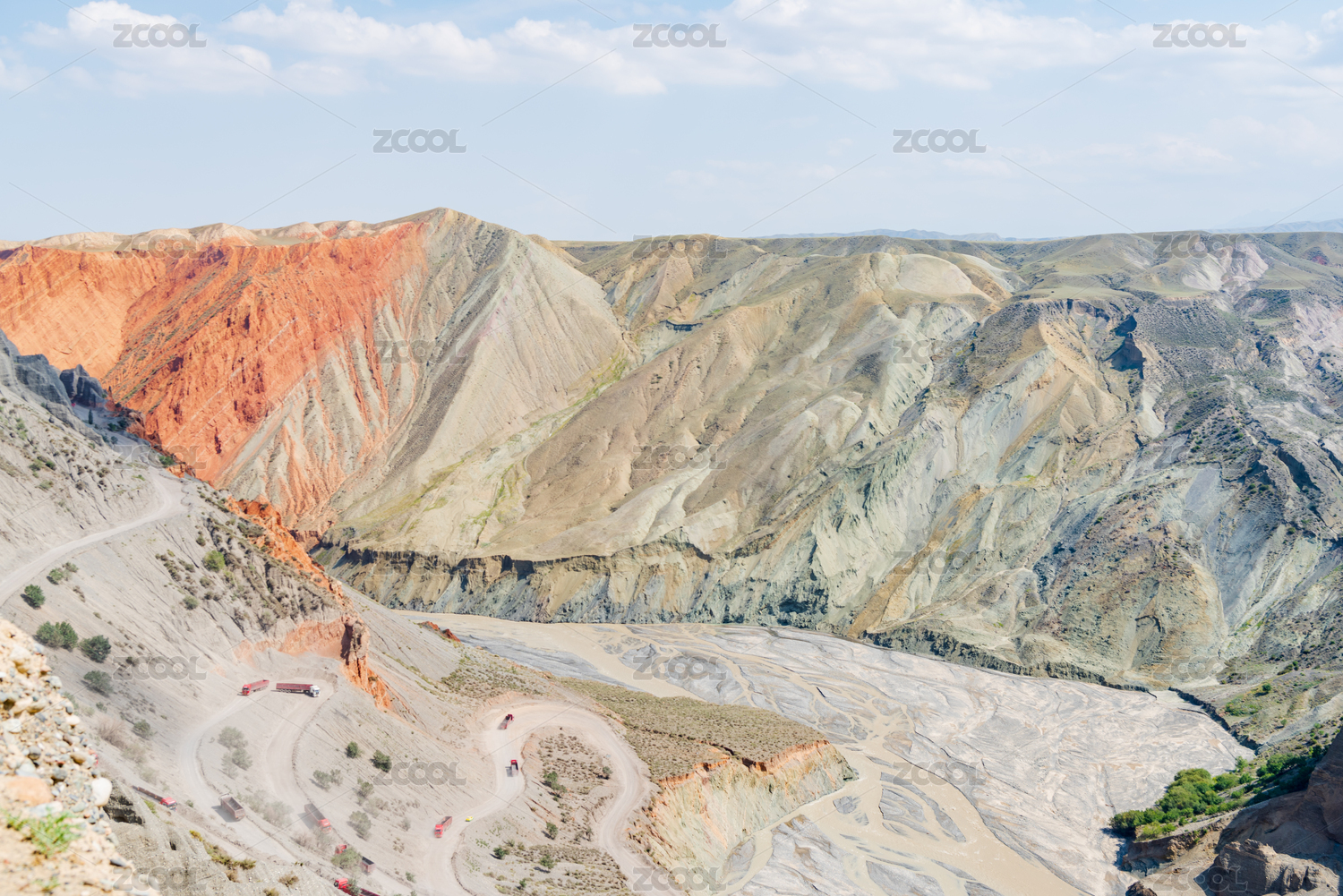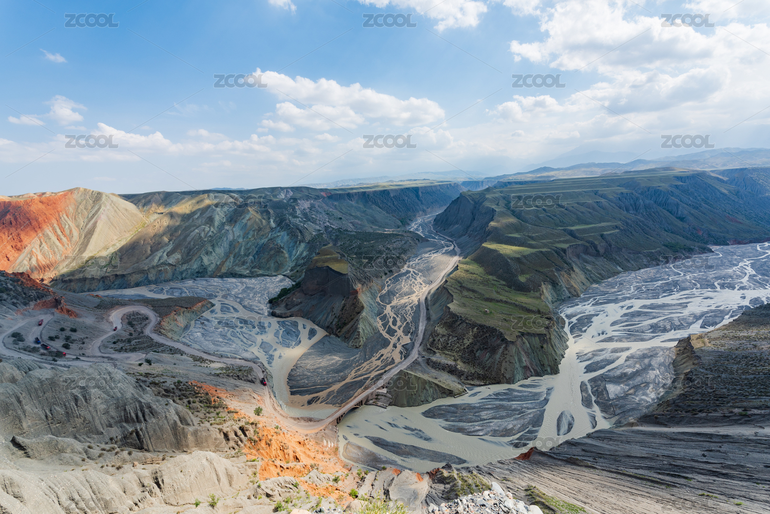 中国新疆红山大峡谷,两岸山脉之间的河床