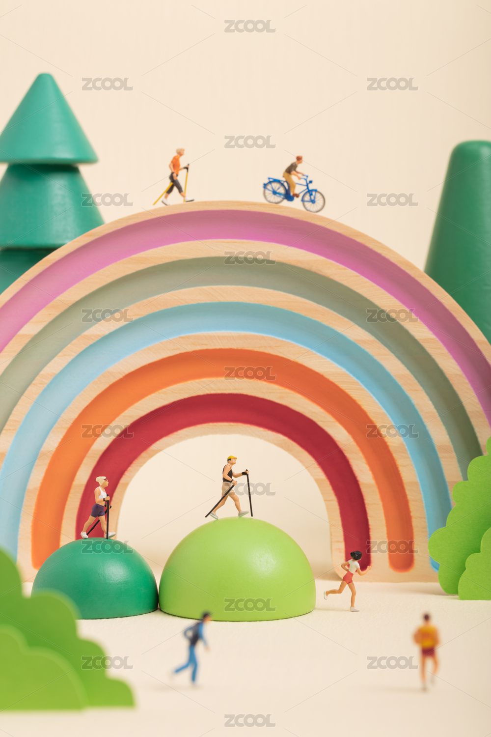 微缩创意几何斜坡上到达终点欢呼的赛车手