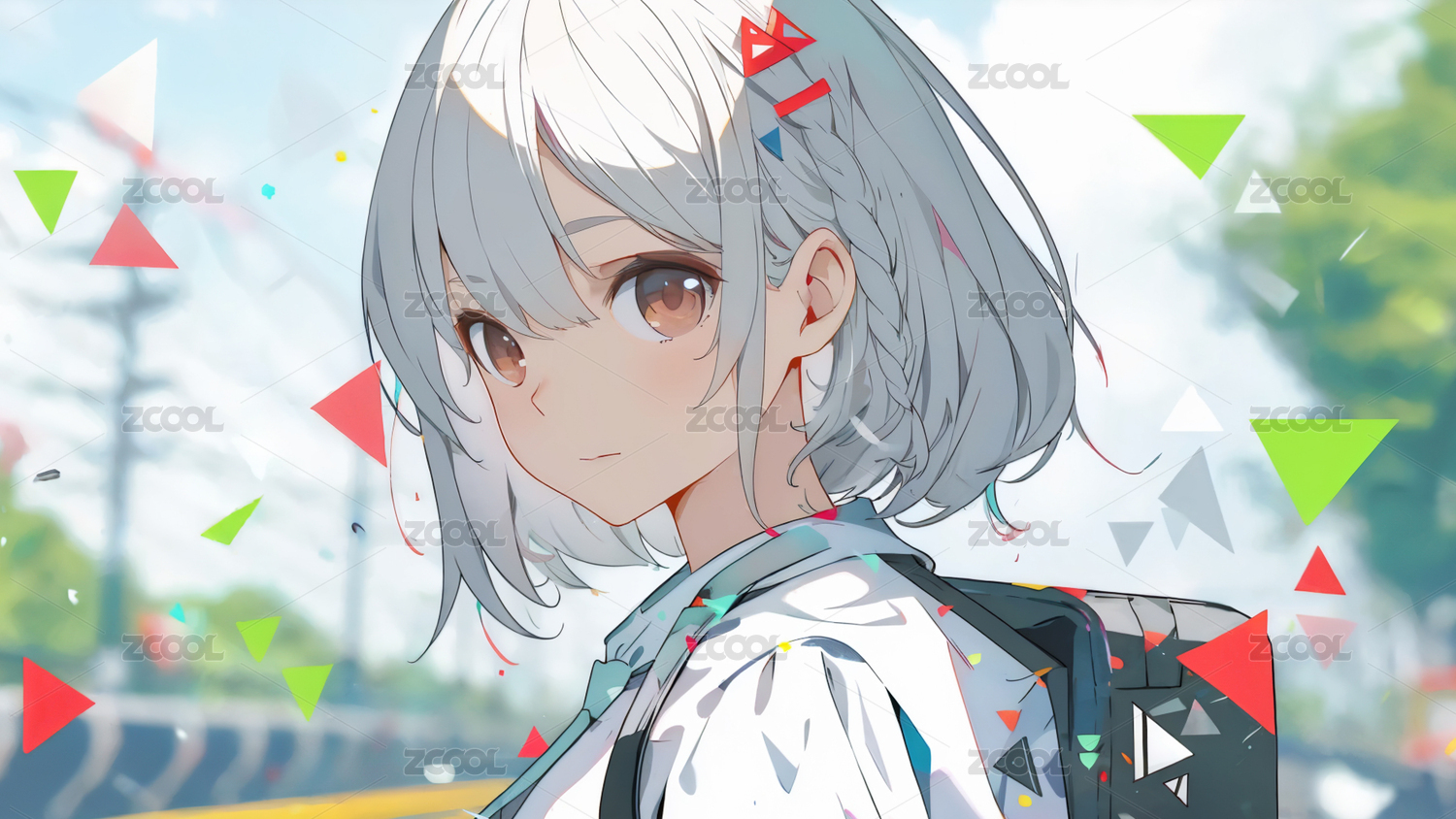 漫画风城市背景女生肖像