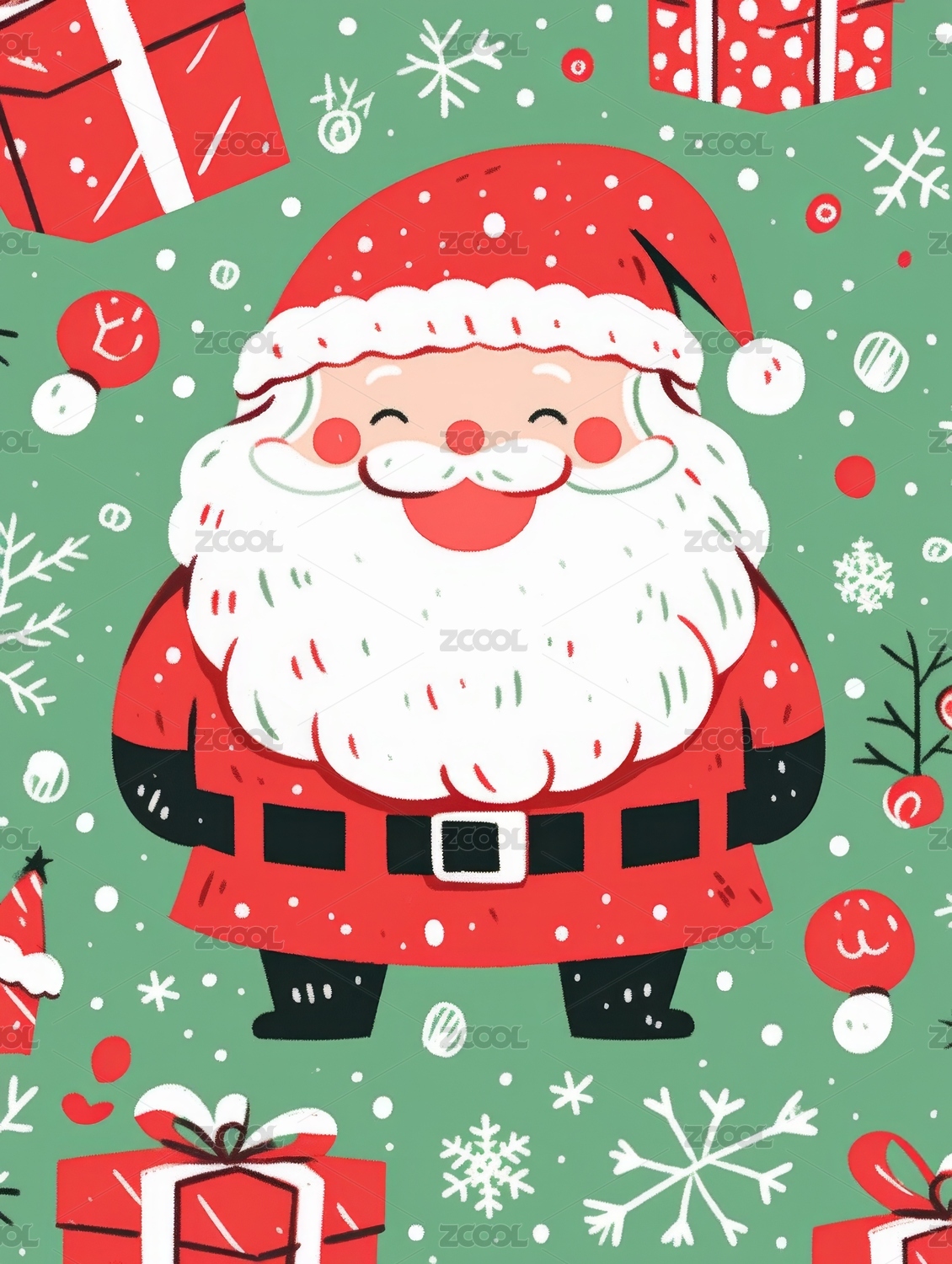 圣诞老人,圣诞节,海报,礼物,插画,治愈系,简笔画