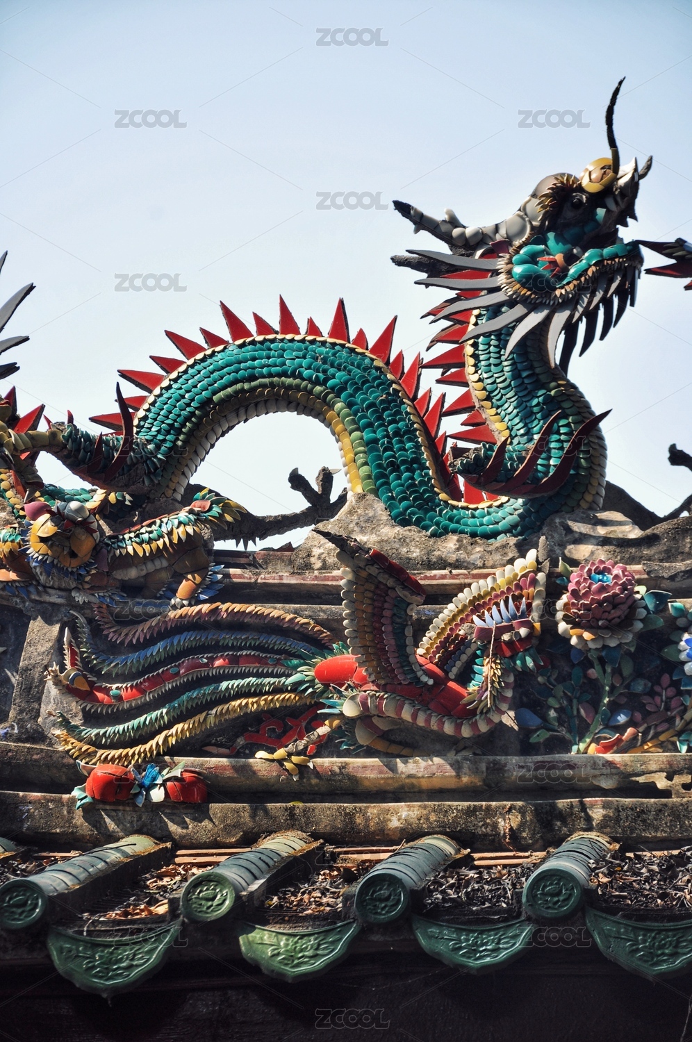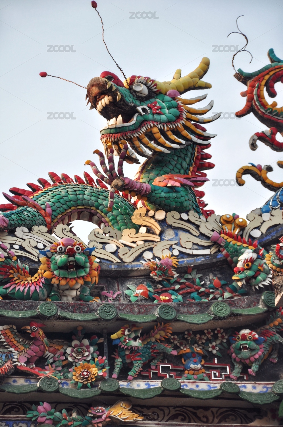 泉州关帝庙中国传统古典建筑屋檐龙形嵌瓷工