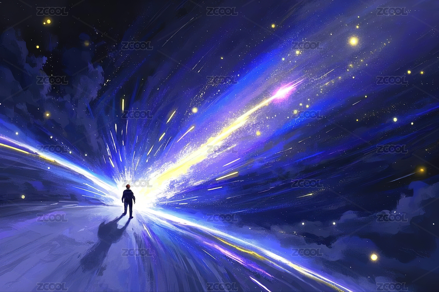夜晚站在星空中的人